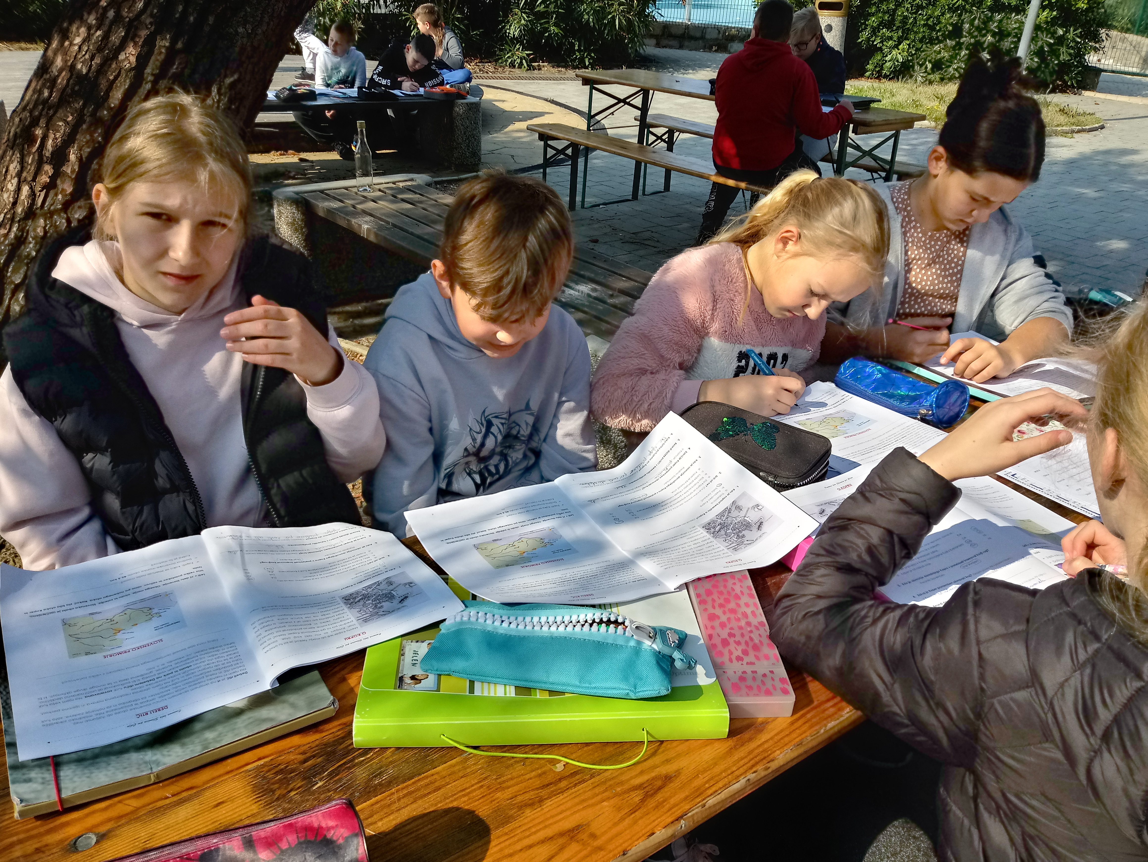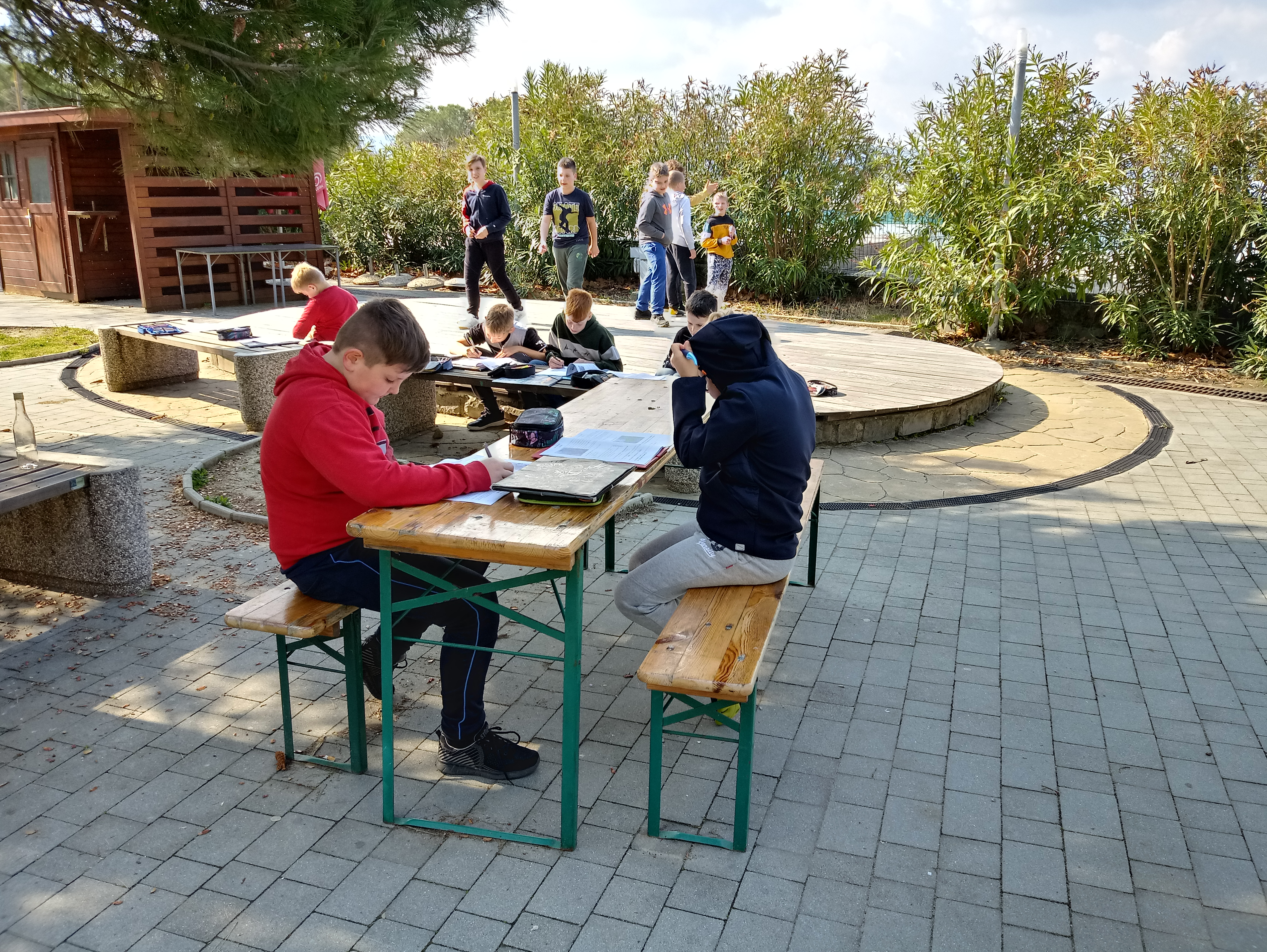Danes smo imeli različne dejavnosti in dan je kar prehitro minil. Dopoldne smo se najprej na igrišču dobro razmigali, nato smo kupili razglednice, imeli pouk, ogled mediteranskega park ter plavanje. Po kosilu je sledil počitek, temu pa pohod. Pot nas je vodila mimo vinogradov. Zvečer pa je sledilo druženje med učenci ter ples.