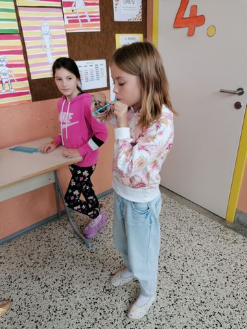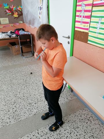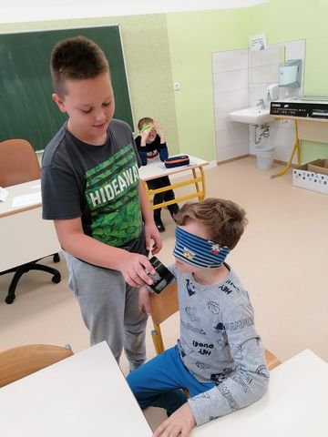 Svoj vid so preizkušali na slikah – optičnih prevarah, opazovali sošolčevo zenico in ugotovili, kaj se z njo dogaja na soncu in v senci. Poslušali so različne zvoke, preverjali, kako slišijo, če svoje uhlje povečajo ali jih zakrijejo. Z zaprtimi očmi so prepoznavali različne vonjave, okušali pijačo ter hrano, risali in tipali. Poskušali so ugotoviti, kaj jim sošolci pišejo/rišejo po hrbtu in še marsikaj. Vsi so povedali, da so se imeli super in da so se zelo zabavali. Nekateri so povedali še malo več…