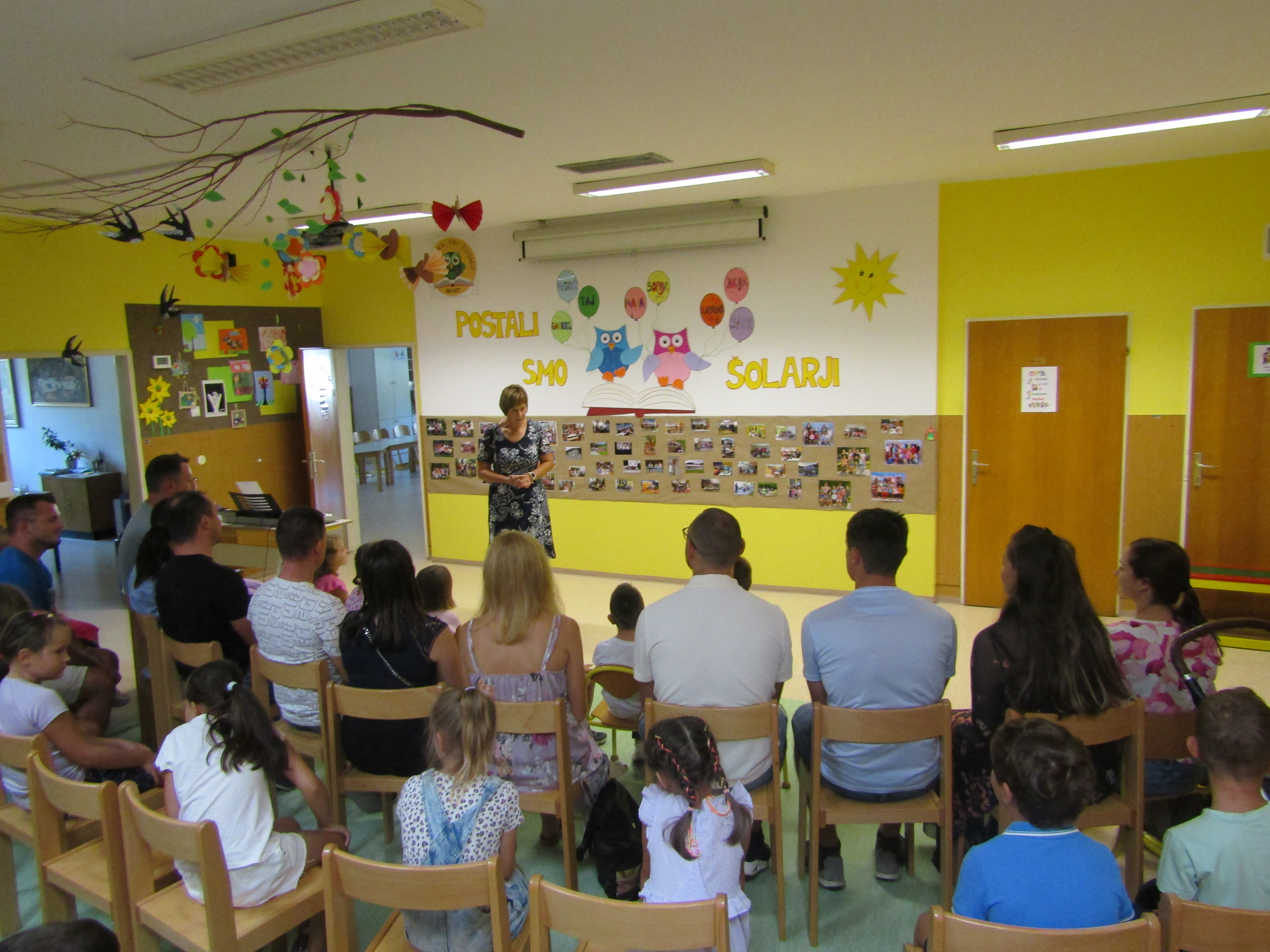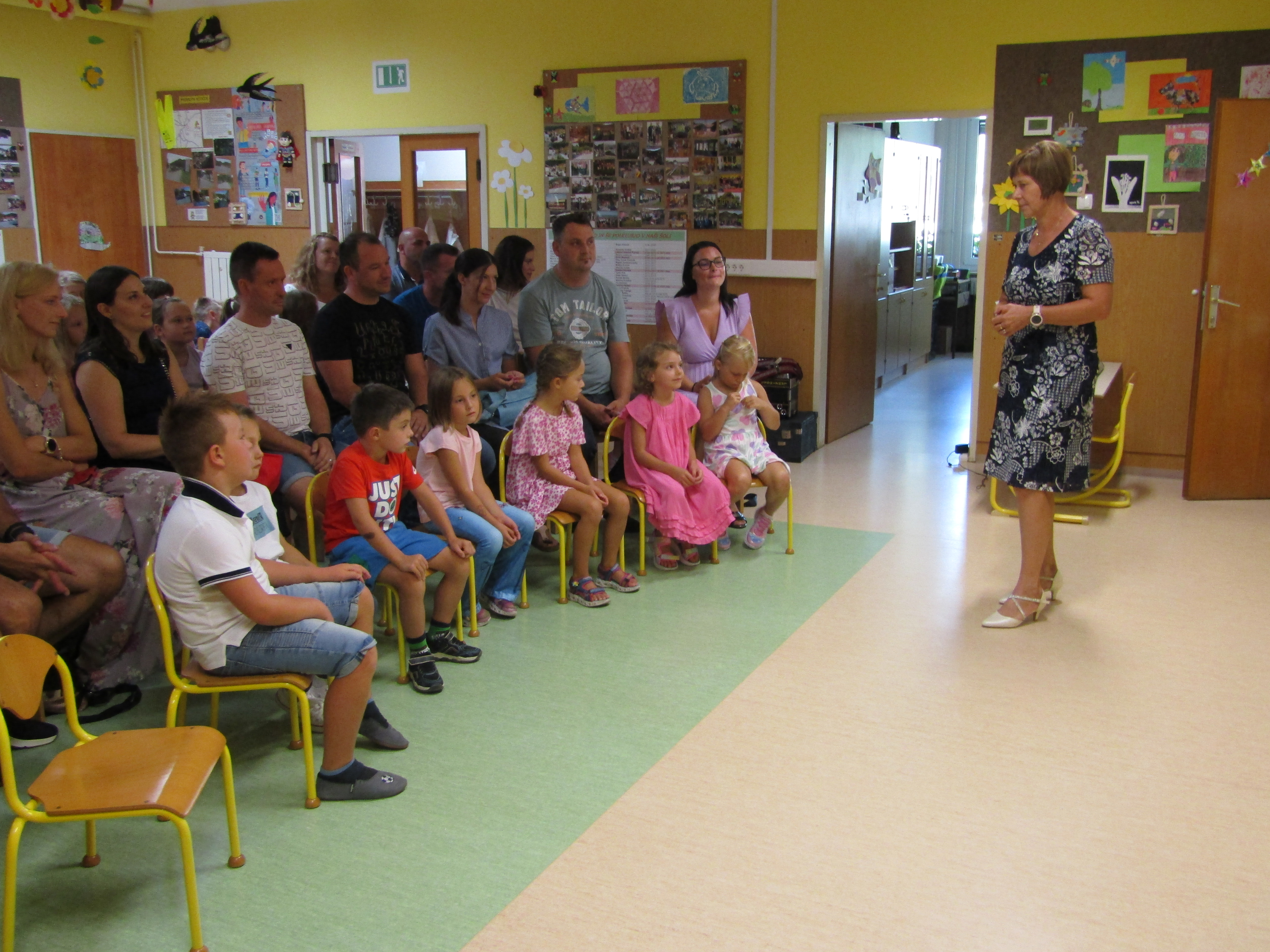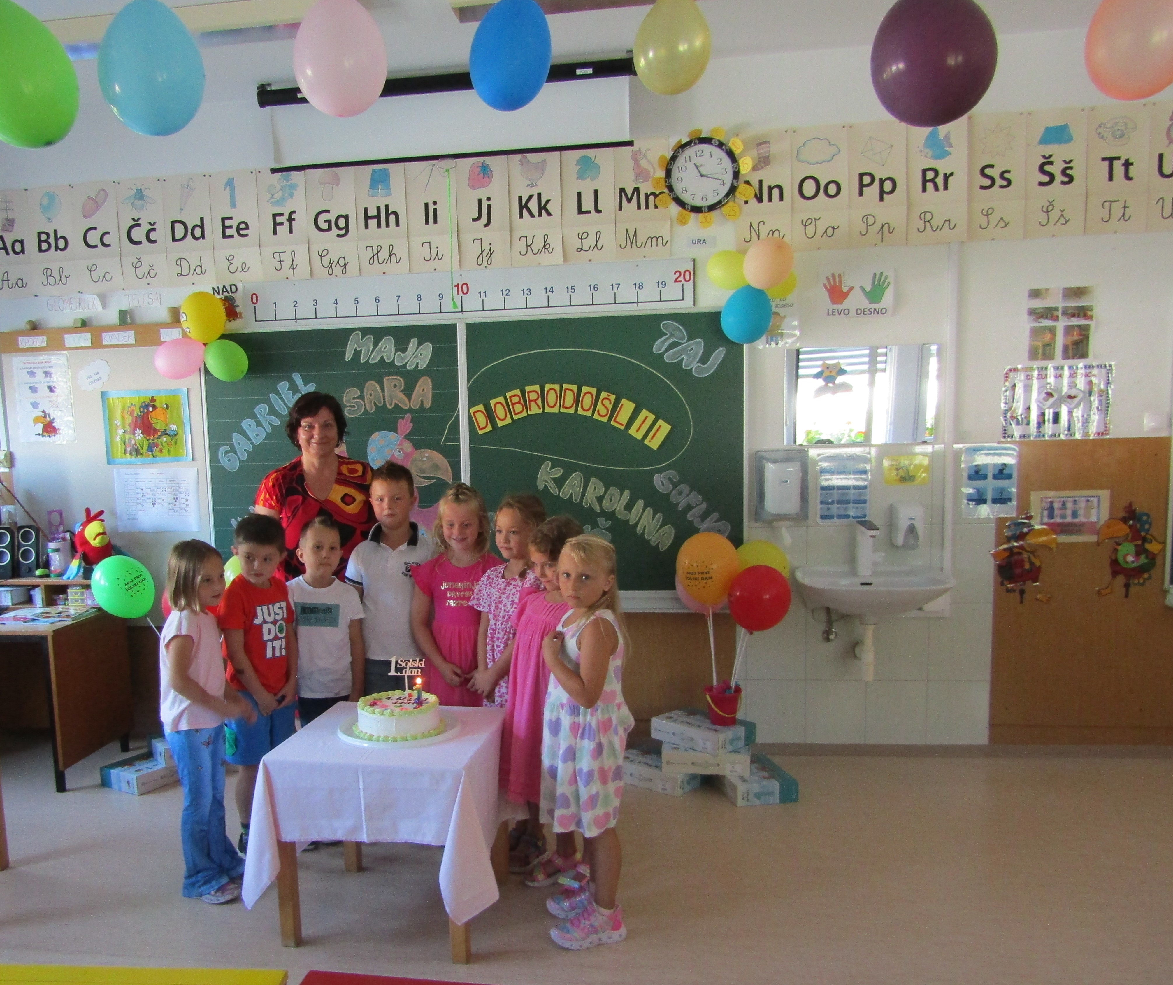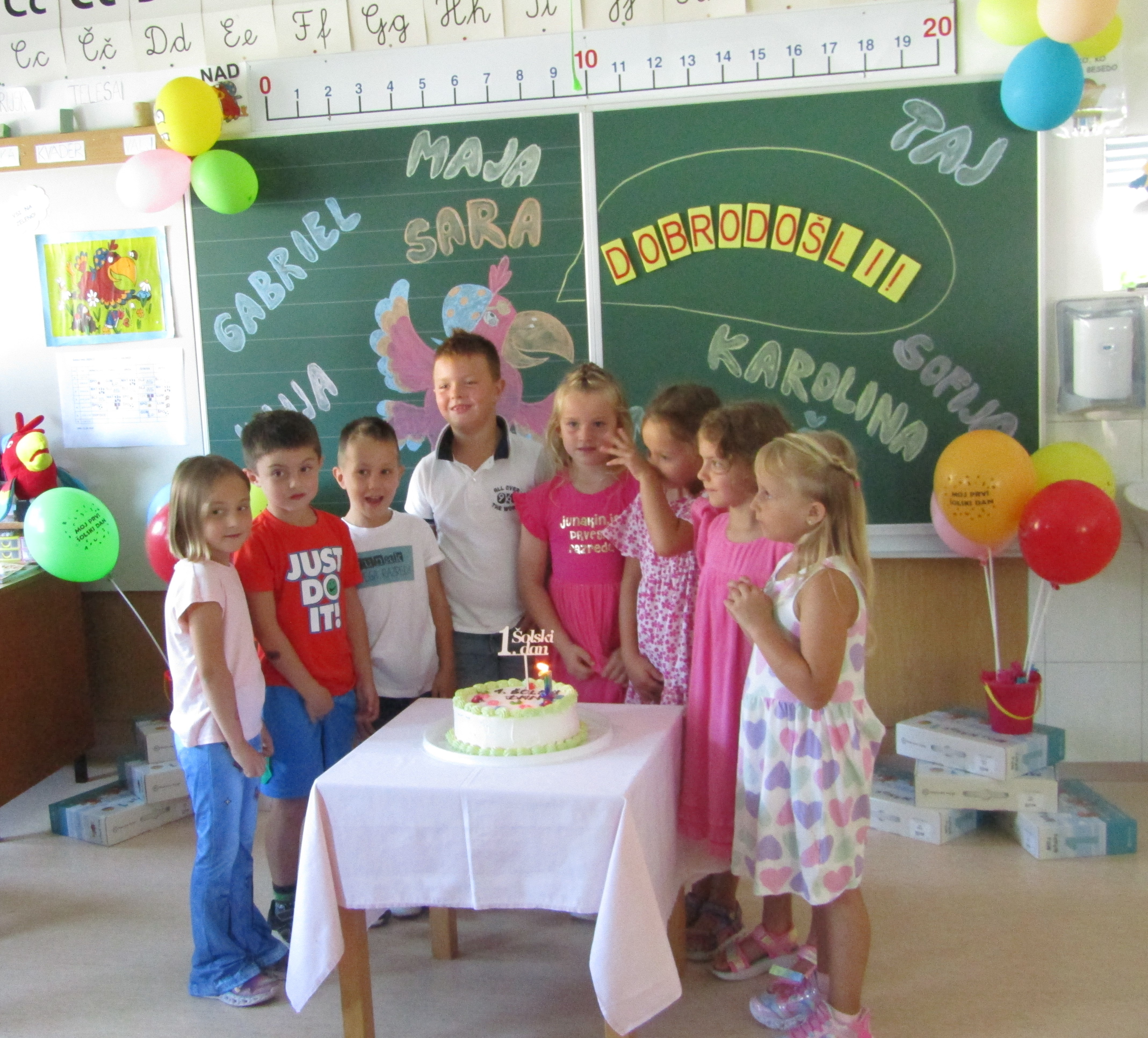 Za tem pa so prvošolci s starši in učiteljico korajžno odšli v svojo učilnico. Tam jih je pričakal tudi njihov prijatelj Nande s katerim so prijetno poklepetali. Povedali so, da jim je učilnica zelo všeč. Zelo so se razveselili majhnih nagradic, ki so jih dobili. Seveda pa je sledilo še sladko presenečenje – torta.