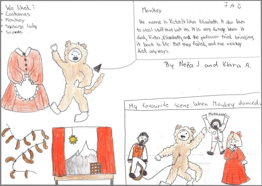 V petek, 14. 3. 2025, so si učenci zadnje triade ogledali gledališko predstavo v angleškem jeziku Frankenstein – the Monster and the Myth. Predstavo so v Narodnem domu Celje uprizorili člani potujočega gledališča American Drama Group Europe, ki so naravni govorci angleščine.