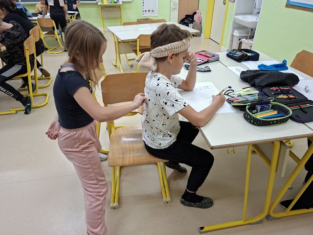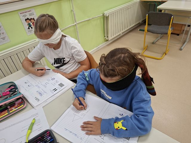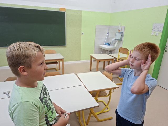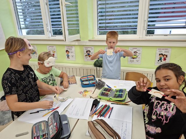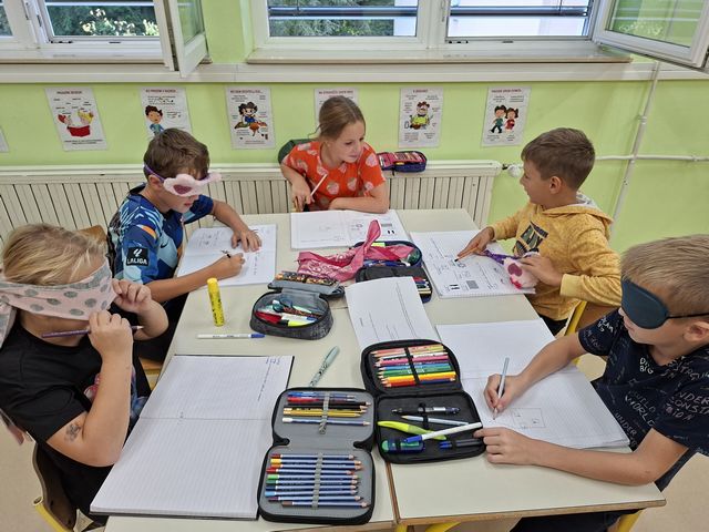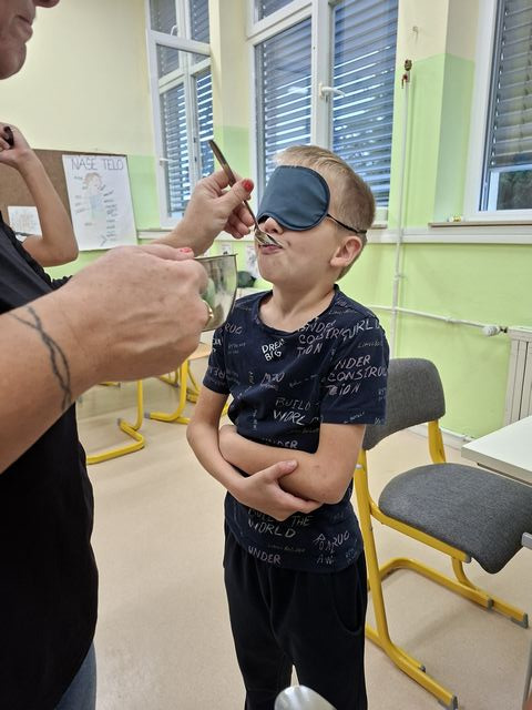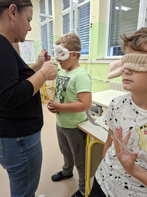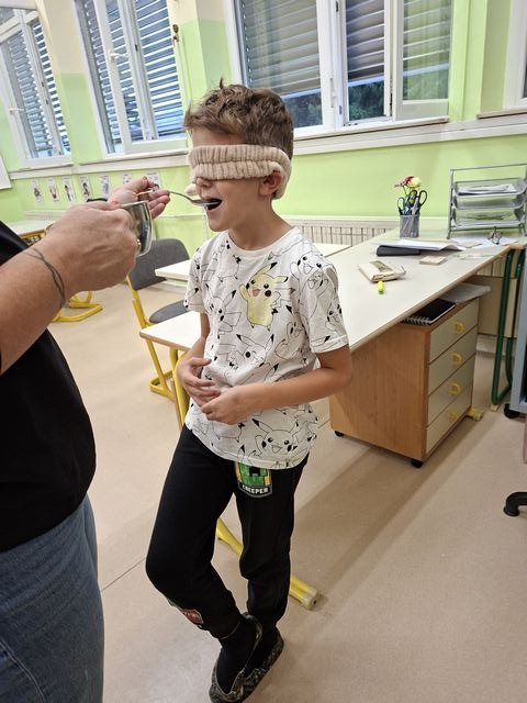 Četrtošolci so na naravoslovnem dnevu zaznavali s čutili. Delo je bilo organizirano po postajah, na vsaki postaji o enem čutilu. Z zaprtimi očmi so prepoznavali okuse in vonje, ugotavljali ali so jim prijetni ali neprijetni. Poslušali so različne zvoke, ugotavljali, kaj se z zvokom dogaja, če krajšamo slamico, v katero pihamo. Z zaprtimi očmi so tipali predmet in ga sošolcem opisovali tako, da so ga le-ti lahko narisali. Prav nič enostavno ni bilo. Opazovali so, kaj se dogaja z zenico pri malo in veliko svetlobe, ugotavljali, da ni nič kaj enostavno risati, če ne vidiš. En drugemu so si risali in pisali po hrbtu in se pri tem zelo zabavali. Pošteno so se namučili, ko so opazovali sličice – optične prevare in odgovarjali na vprašanja. Na karton so narisali kletko in ptička. Pri dovolj spretnih prstkih je ptiček čudežno skočil v kletko. Dogajalo se je še marsikaj. Dopoldne je kar prehitro minilo in učenci so s prijetnimi vtisi zapustili učilnico.