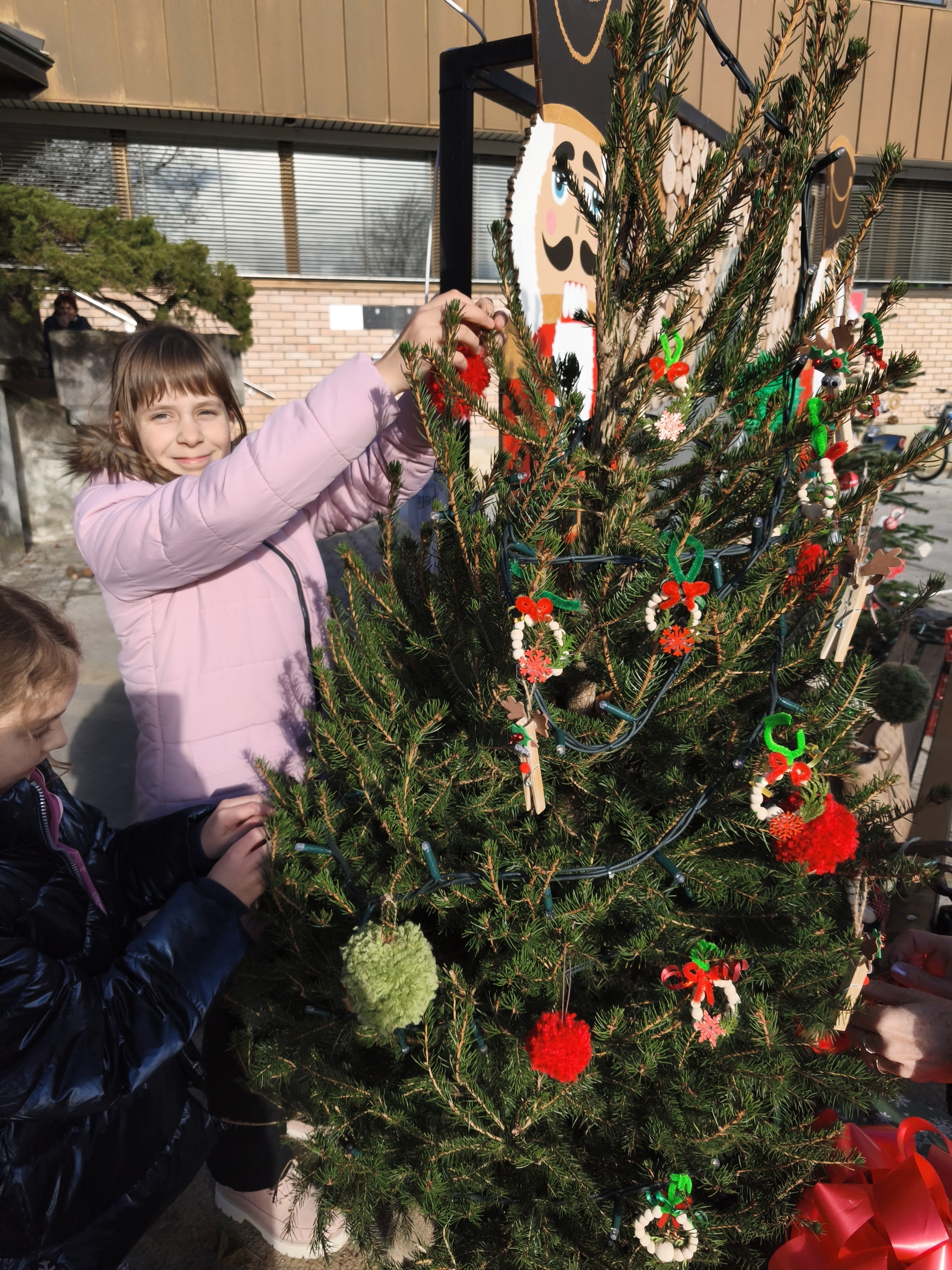 Na naši podružnični šoli smo se tudi to leto odločili, da bomo sodelovali pri krasitvi smrečic v Šentjurju. Vsak oddelek je izdelal svoje okraske, s katerimi so v petek, 28. 11. 2025, učenke in učiteljici okrasile dodeljeno smrečico, ki stoji na Mestnem trgu. Zelo smo veseli in ponosni, da bo tudi v letošnjem decembru naša čarobna smrečica soustvarjala praznično vzdušje v Šentjurju.