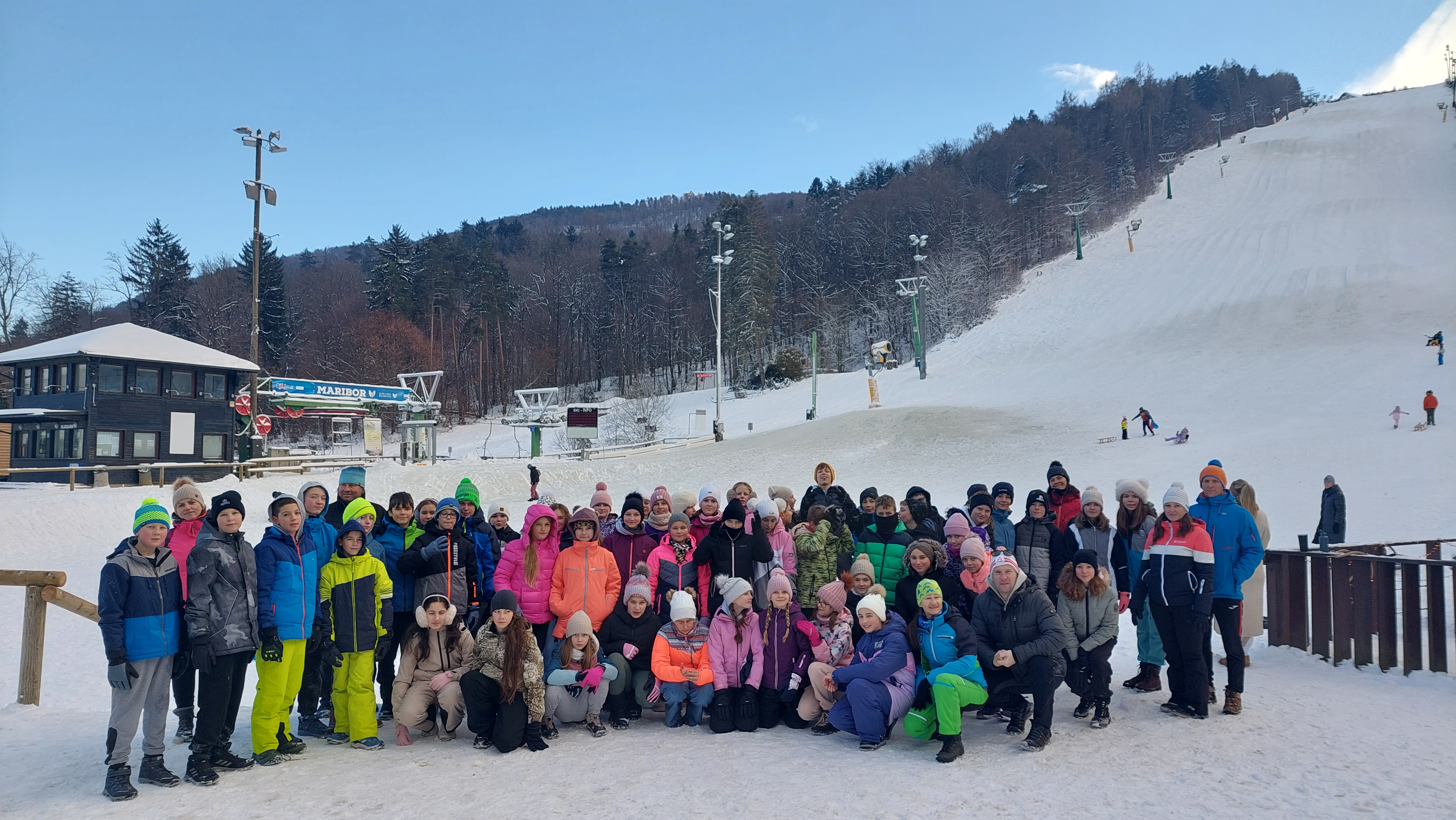 Za nami je še zadnji smučarski dan zimske šole v naravi, ki nam bo ostal v prelepem spominu. Po odlični dopoldanski smuki, smo se popoldan odpravili z gondolo v Maribor in si ogledali Snežni stadion. Po malici nas je obiskal lovec ter nam predstavil živalski svet na Pohorju. Dan smo zaključili z nepozabnim večerom, polnim smeha, plesa in prijateljskega druženja.