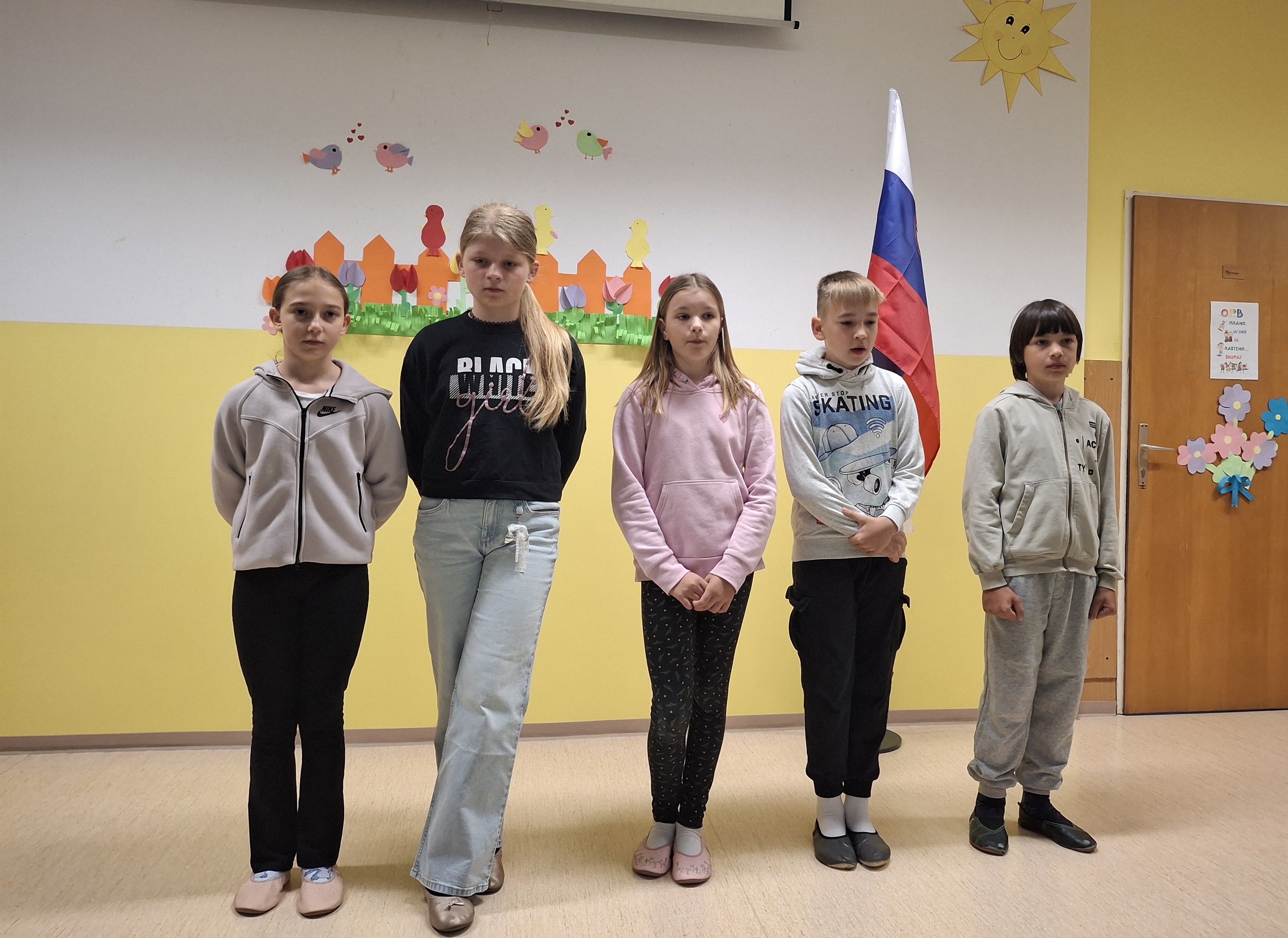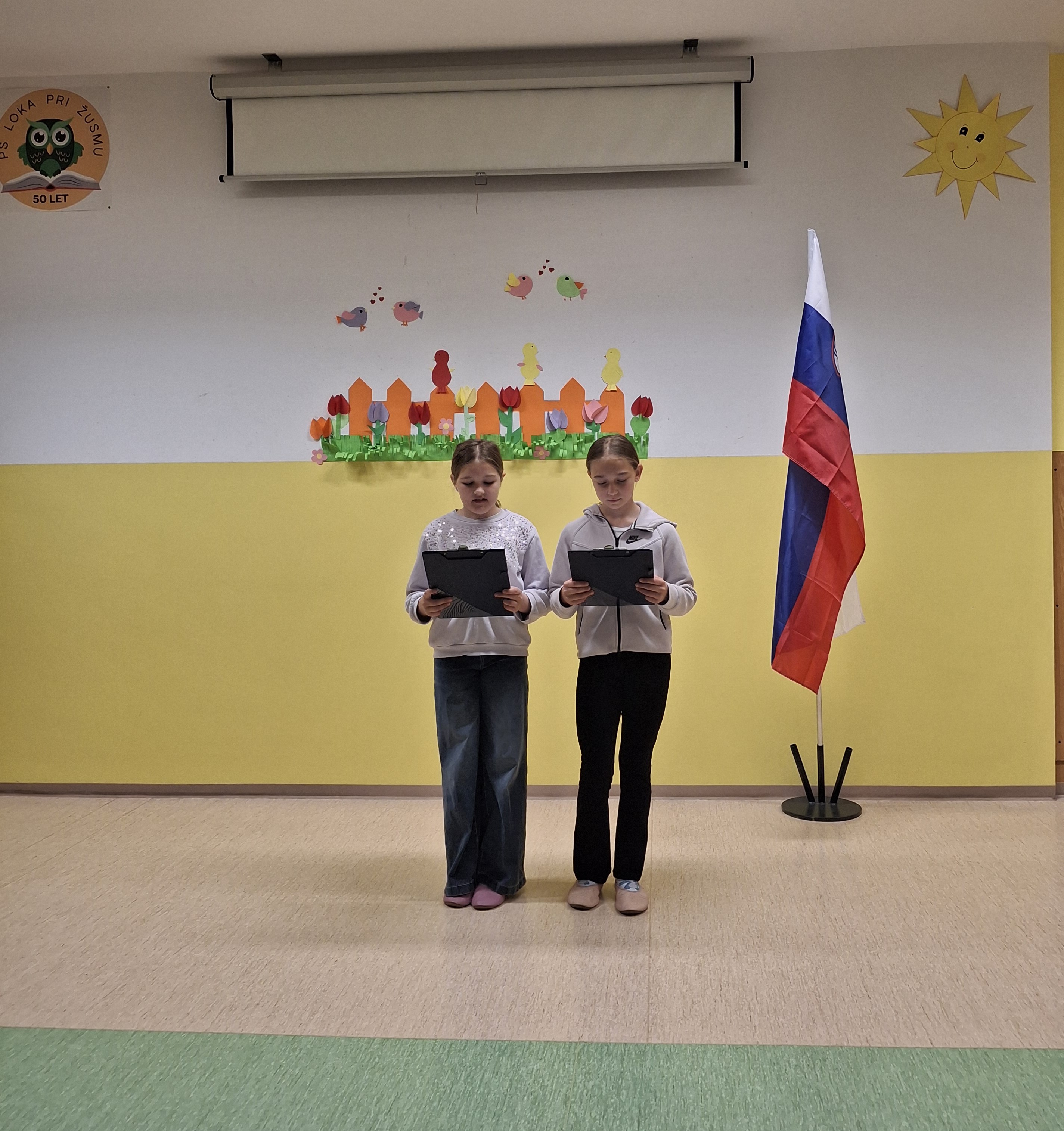 V petek, 24. 4. 2026, smo v PŠ Loka obeležili prihajajoča praznika dan upora proti okupatorju in praznik dela. Pripravili smo lep krajši program, ki sta ga povezovali učenki Ajda in Inaja. Po himni Zdravljici so učenci nastopili z raznimi deklamacijami, petjem in spremljavi pevskega zbora ter z igrico Prvomajska ulica. Na koncu pa sta s harmoniko zaigrala še Matic in Vall in nas z lepima melodijama že skoraj popeljala v prvomajsko praznovanje.