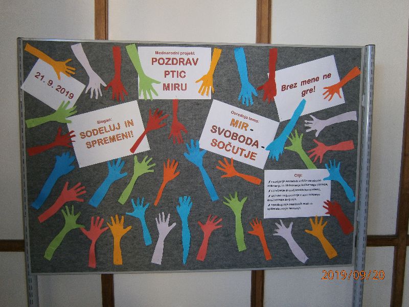 V petek, 20. 9. 2019, smo se drugošolci OŠ Slivnica pri Celju odpravili na šolsko dvorišče, kjer smo tekli s ptički, ki smo jih sami naredili. S tekom smo sodelovali v mednarodnem projektu Pozdrav ptic miru. Več pa povedo fotografije…
