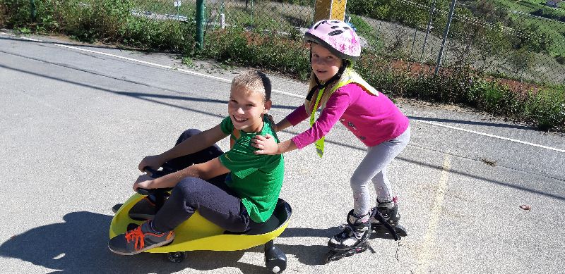 Tople in sončne jesenske dni na Prevorju, pridno izkoriščamo za vožnjo s skiroji, rolerji, kotalkami in plazmacarjem.