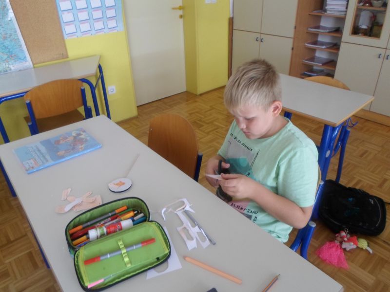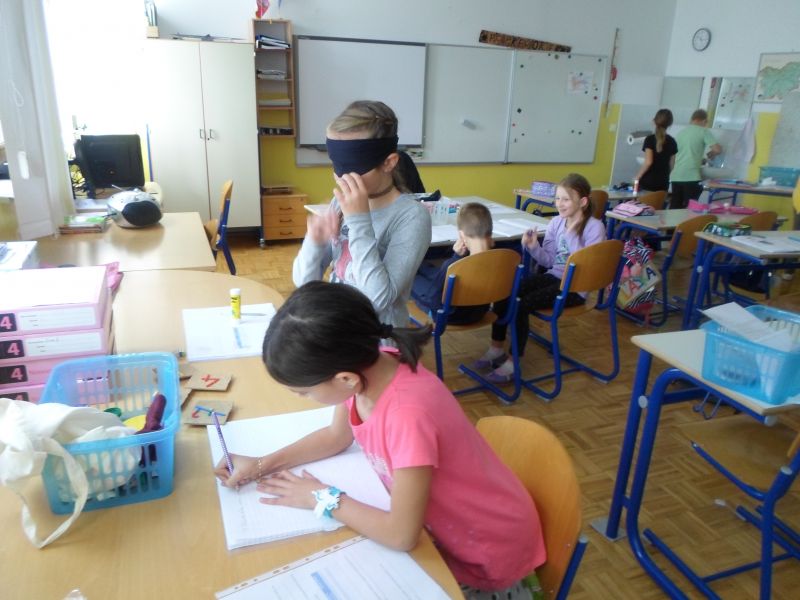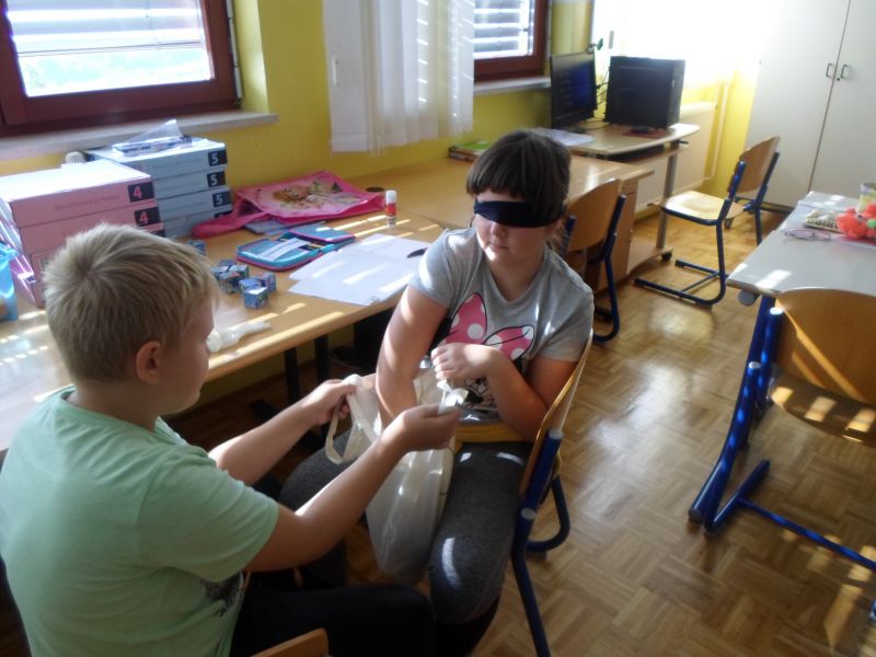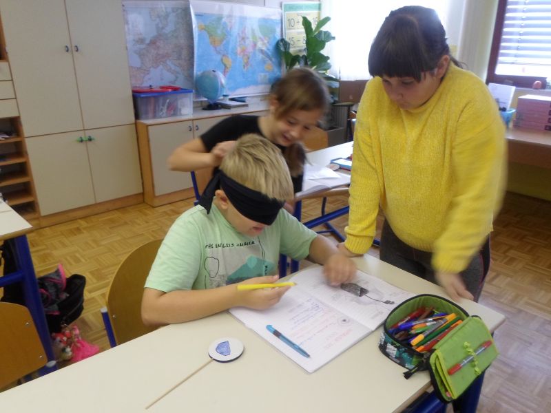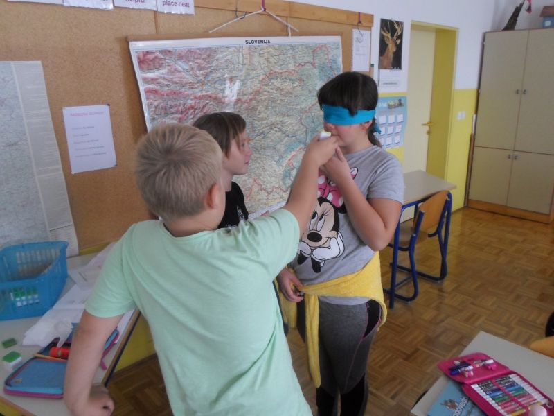V torek, 1.10.2019 smo četrtošolci na PŠ Prevorje imeli prvi naravoslovni dan ČLOVEŠKO TELO – ČUTILA. Ker nas ni veliko, smo se razdelili kar v pare in izvajali zanimive poskuse. Z zavezanimi očmi smo tipali in ugotavljali kaj se skriva v vrečki, vonjali in prepoznavali različne vonjave, okušali različne okuse, poslušali in prepoznavali zvoke ter se poigrali z iluzijami. Pri delu smo zelo uživali, predvsem pa smo spoznali, da so vsa čutila zelo pomembna za življenje in da bi brez njih zelo težko živeli. Na koncu smo iz papirja izdelali še gibljivega možička in tako zadovoljni zaključili naravoslovni dan.