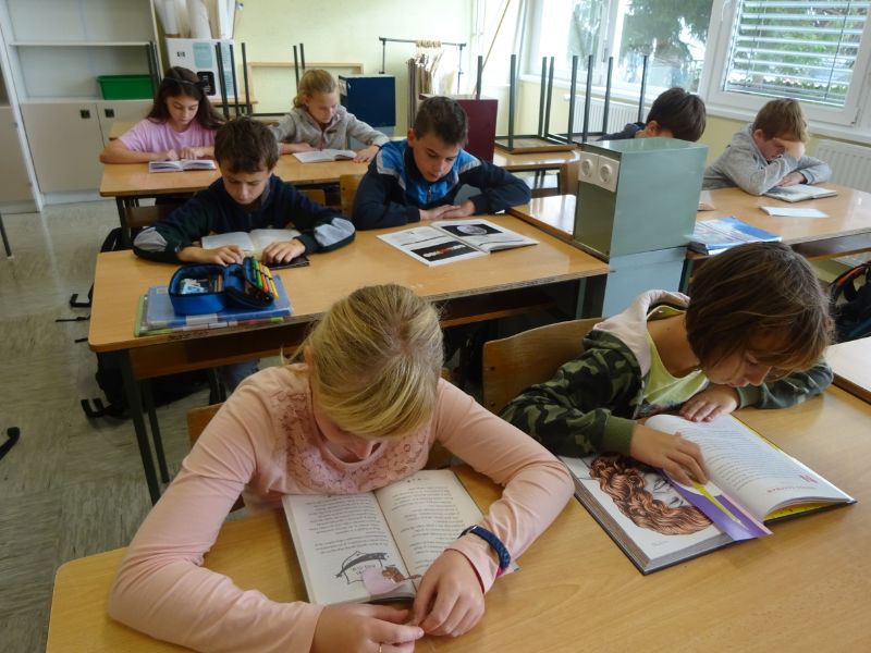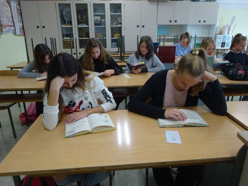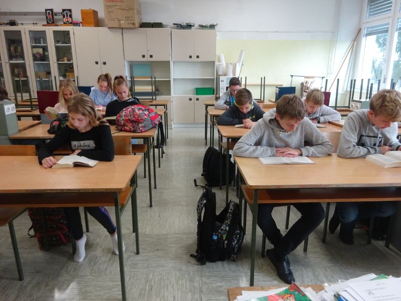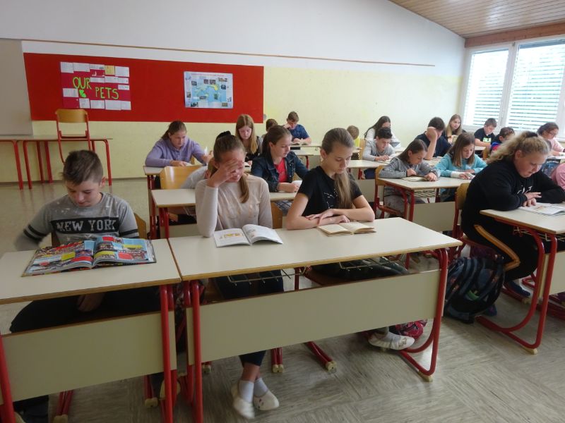 Med 21. in 25. oktobrom, v tednu pred jesenskimi počitnicami, smo organizirali bralni teden. Brali smo vsi, učenci in  učitelji, na razredni in predmetni stopnji. Učiteljice na razredni stopnji so organizirale branje po svojih idejah, na predmetni stopnji pa so učenci lahko brali knjige ali revije po lastnem izboru vsako šolsko uro po deset minut. Z bralnim tednom smo želeli doseči, da bi vsi malo več brali in se o prebranem pogovarjali. Spodbujali smo tudi branje za bralne značke in obiskovanje knjižnice. Z bralnim tednom smo se pridružili Nacionalnemu mesecu skupnega branja.