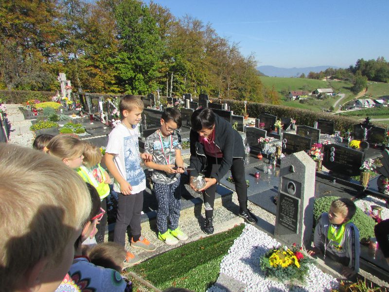 Ob prihajajočem dnevu spomina na mrtve, smo obiskali še pokopališče in spomenik padlih borcev na Prevorju, kjer je vojni veteran, g. Mirko Pajek, namenil nekaj besed borcem, mi pa smo s krajšim kulturnim programom in prižigom svečk ter cvetjem, počastili še njihov spomin.