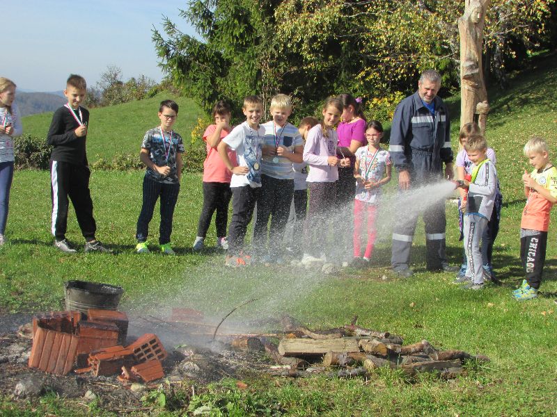 V mesecu požarne varnosti smo tudi na Prevorju v petek, 25. oktobra, izvedli vajo evakuacije. Prijazna gasilca PGD Prevorje, sta učence najprej poučila, kako ravnati v primeru požara, nato pa so učenci svoje pridobljeno znanje pokazali še z reševanjem “kratkih preizkusov” in bili zelo uspešni. Prejeli so zlate, srebrne in bronaste medalje. Po uspešno izvedeni evakuaciji iz šolskih prostorov, je sledil še ogled gasilskega avtomobila in vaja gašenja.