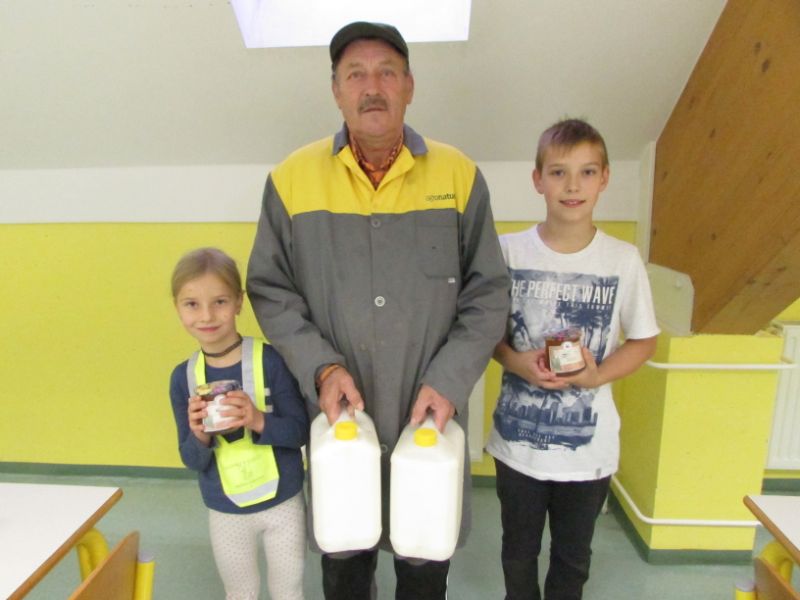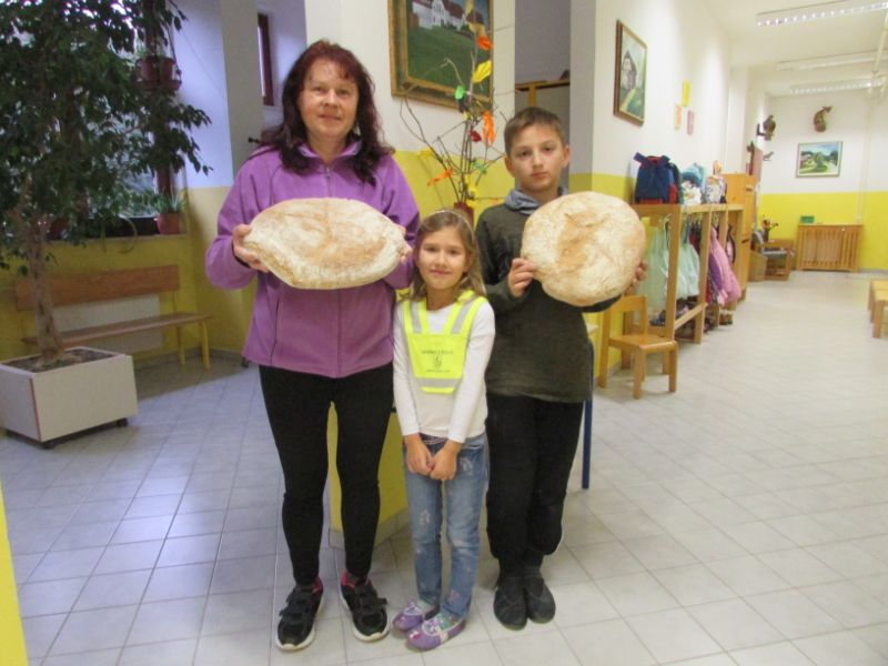 Domači kruh, ki ga je spekla družina Lipovšek, mleko in med, iz kmetije Bevc, jabolko in maslo so bili odličen zajtrk in prava energijska bombica za delo, ki nas je čakalo v nadaljevanju.
