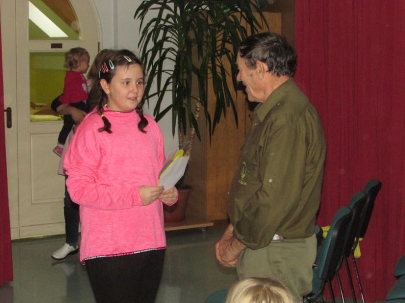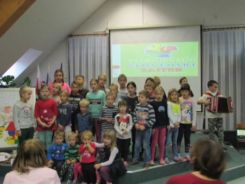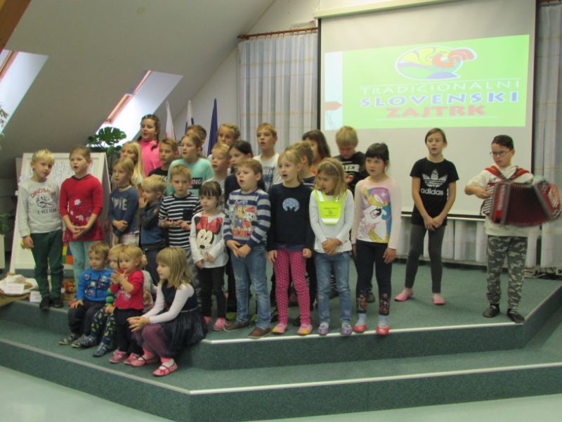 Ob zvokih harmonike izpod spretnih prstov Žana Pertinač, je skupaj z učenci ter otroki iz vrtca zapel tradicionalno Slakovo pesem Čebelar.