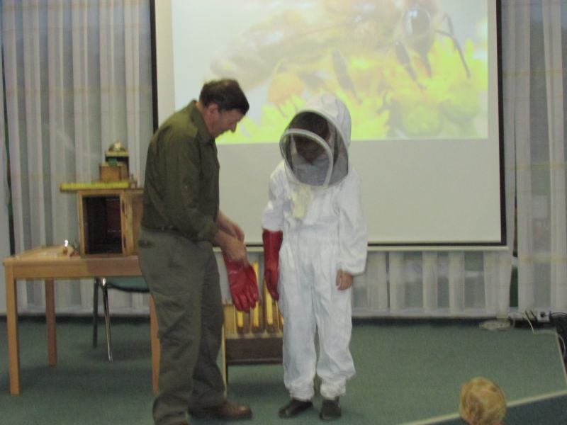 Po zajtrku nas je obiskal čebelar gospod Marjan Bevc, ki nam je predstavil delo čebelarja, čebelarske pripomočke ter poudaril pomen čebel za človeka.