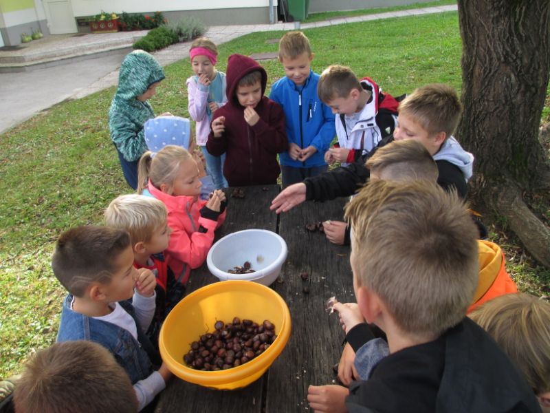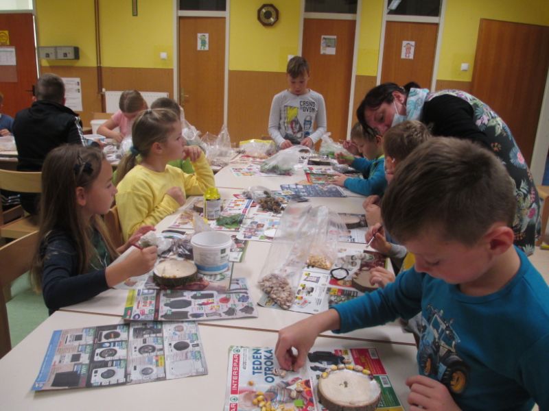 Ta teden je bil prav zabaven. Najbolj ravno zaradi tega, ker je posvečen otrokom in to ne samo en dan, ampak kar cel teden. Seveda je pouk in vse ostalo potekalo tako kot navadno, je bil ta teden le malce drugačen zaradi dnevnih posebnosti. Za začetek sta učiteljici združili razreda in je vseh pet razredov imelo skupaj športno vzgojo, ki je veliko bolj zanimiva, če se lahko mlajši učenci primerjajo s petošolci in jih poskušajo dohiteti. V ta namen sta učiteljici postavili poligon v telovadnici in miganje se je začelo. Temu je sledilo likovno ustvarjanje. Tudi to je bilo veliko bolj zanimivejše, saj pouk ni potekal v razredu, ampak v jedilnici. Pri tem so učenci uporabili naravni material in na koncu naredili razstavo. Sredi tedna je prišel na obisk tudi policist, ki je učence popeljal po Loki in jim malo osvežil znanje o pravilnem obnašanju na cesti. Četrtek in petek sta bila najzabavnejša. V četrtek je bil kino kar v šoli. Ob gledanju filma so učenci grizljali kokice in se smejali ob smešnih prizorih filma. V petek pa je bil dan za kostanj, ki so ga učenci pridno pojedli zunaj na jesenskem soncu. Zabavno pa ni bilo samo med poukom, ampak tudi v podaljšanem bivanju. Učenci so s seboj pripeljali vozila in izkoristili igrišče za dirkanje s kolesi, rolerji in skiroji. V gozdu so nabrali različne naravne materiali in jih uporabili za izdelavo družabnih iger zunaj. Najbolj zabavno pa je bilo izdelovanje ježkov iz lesa in žebljev. Vse kar so učenci počeli, si lahko ogledate v galeriji slik.