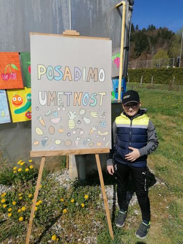 V četrtek, 7. 4. 2022, smo imeli učenci 3. in 4. razreda iz Gorice prav poseben naravoslovni dan. Odšli smo v Šolski center Šentjur, kjer so imeli postavljeno razstavo z naslovom Posadimo umetnost. Razstavljenih je bilo več kot 3000 risb učencev iz vse Slovenije, ki so ustvarjali na temo Moje najljubše sadje in zelenjava.