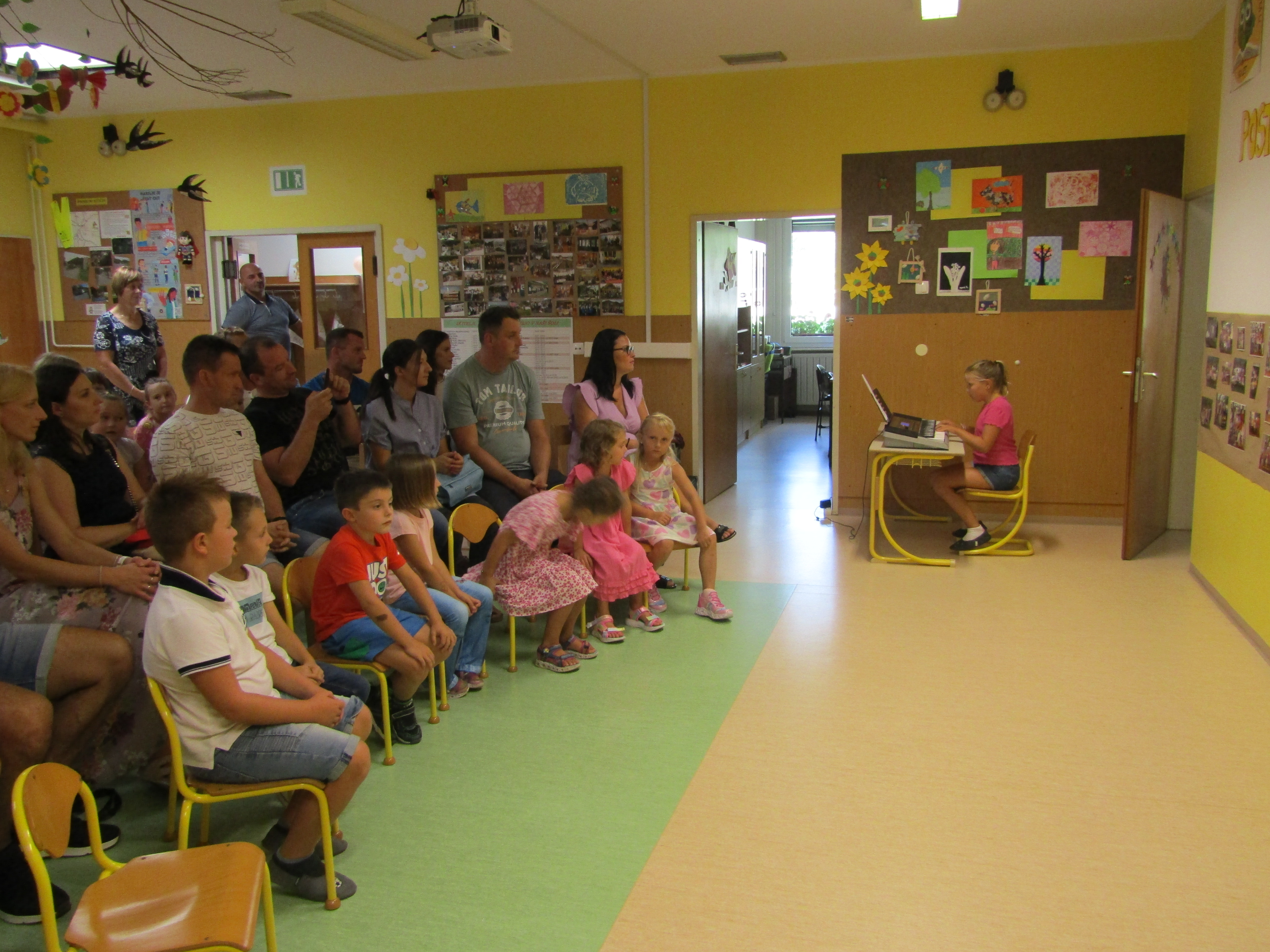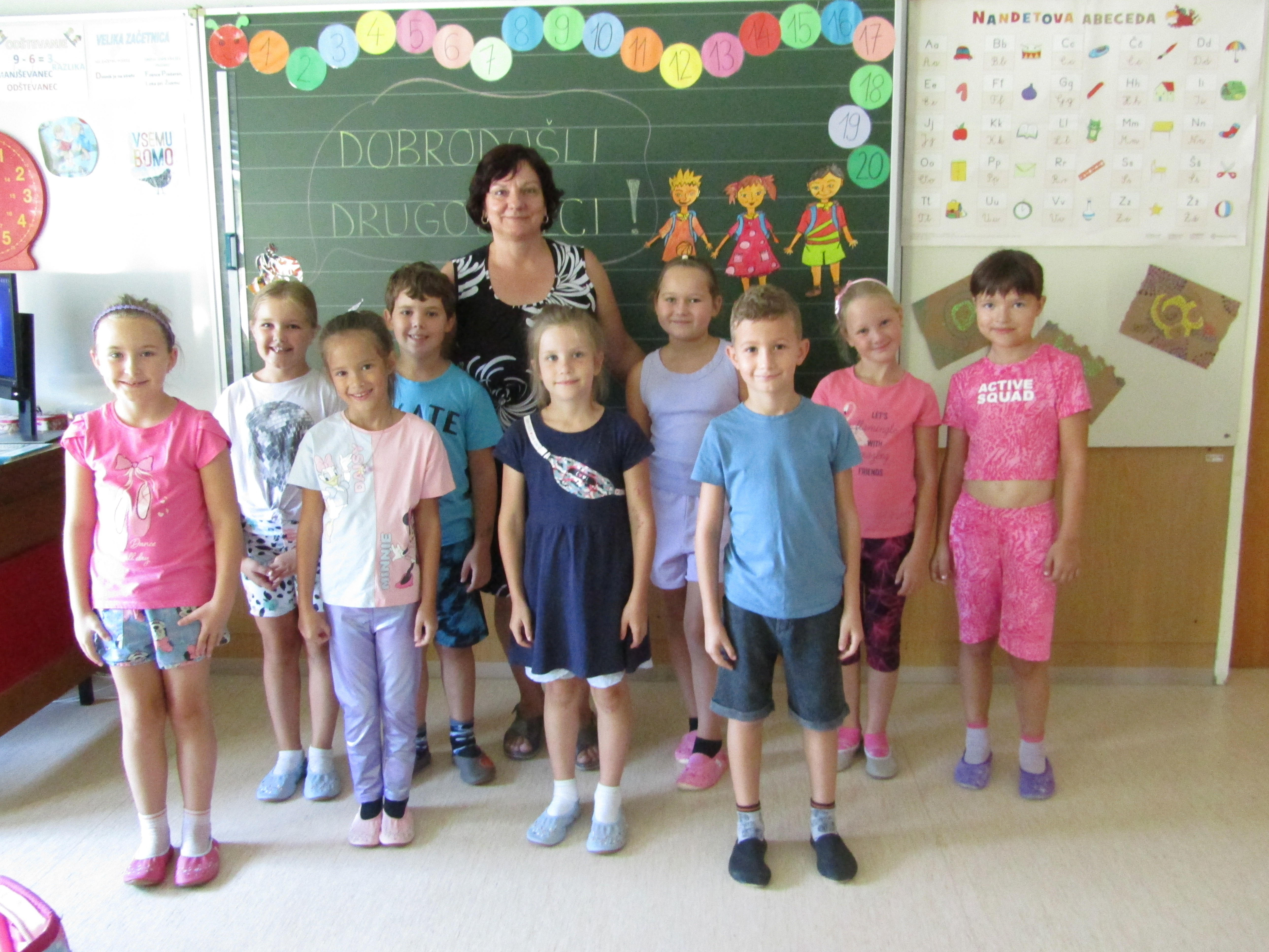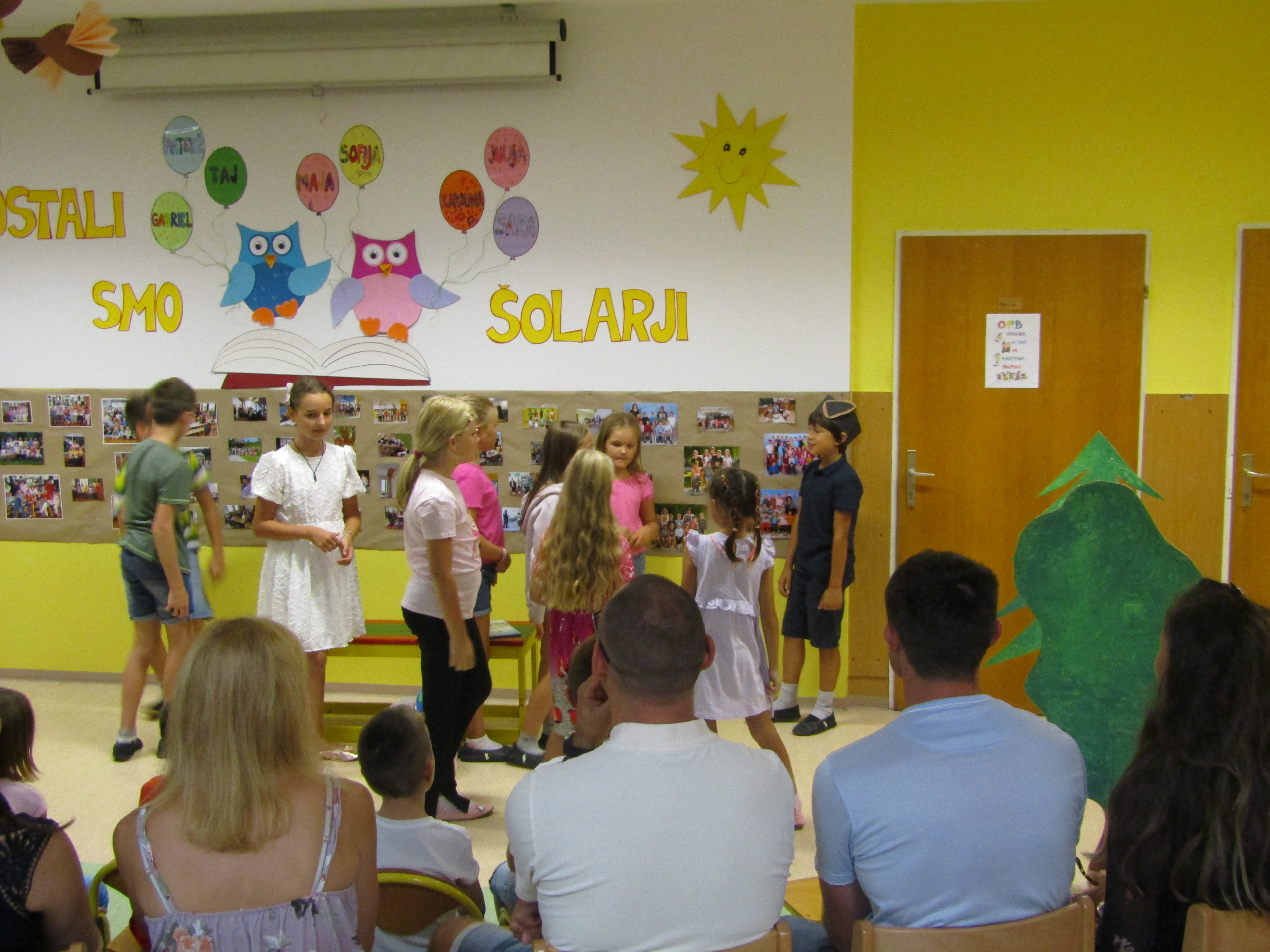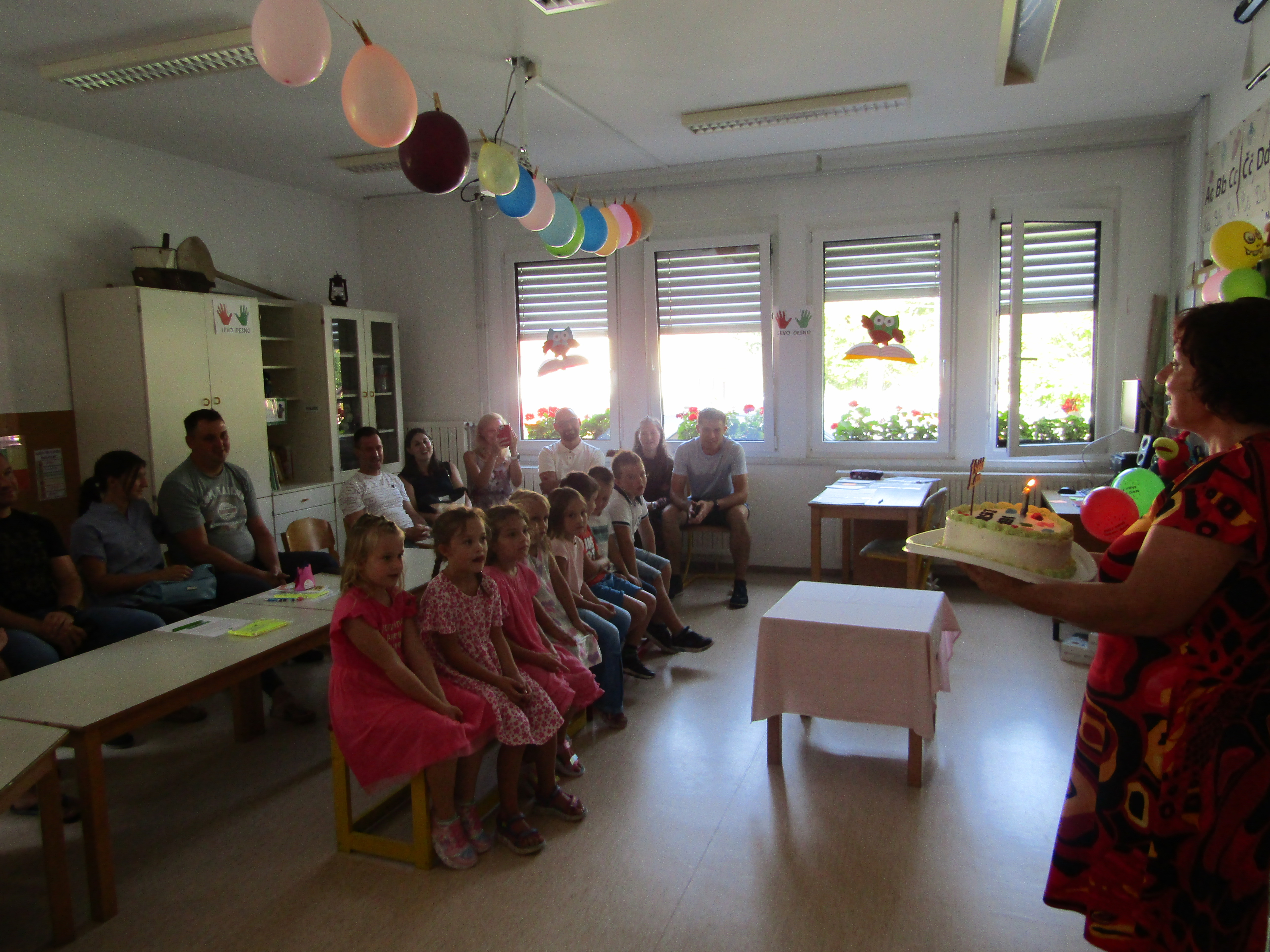 Za tem pa so prvošolci s starši in učiteljico korajžno odšli v svojo učilnico. Tam jih je pričakal tudi njihov prijatelj Nande s katerim so prijetno poklepetali. Povedali so, da jim je učilnica zelo všeč. Zelo so se razveselili majhnih nagradic, ki so jih dobili. Seveda pa je sledilo še sladko presenečenje – torta.