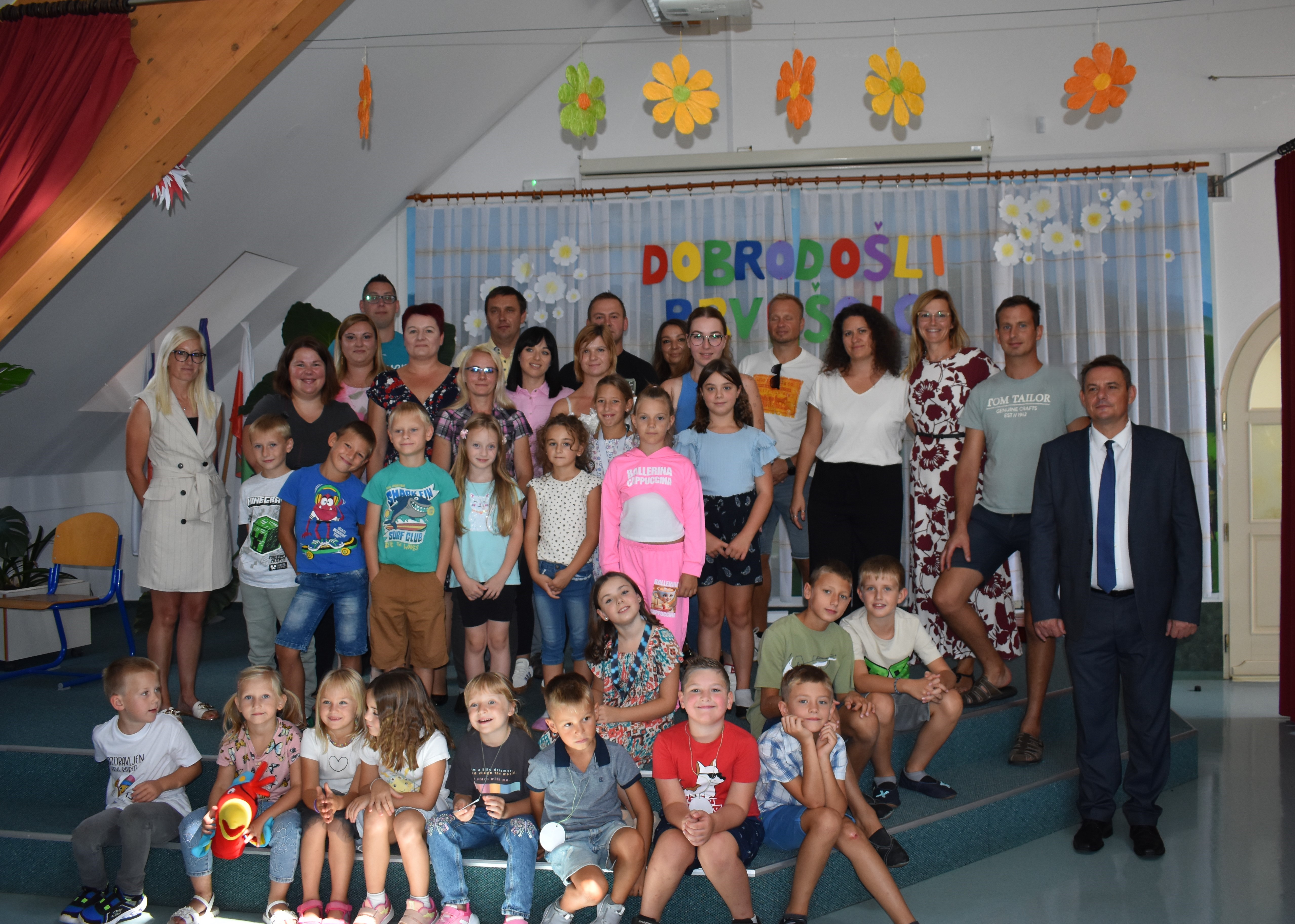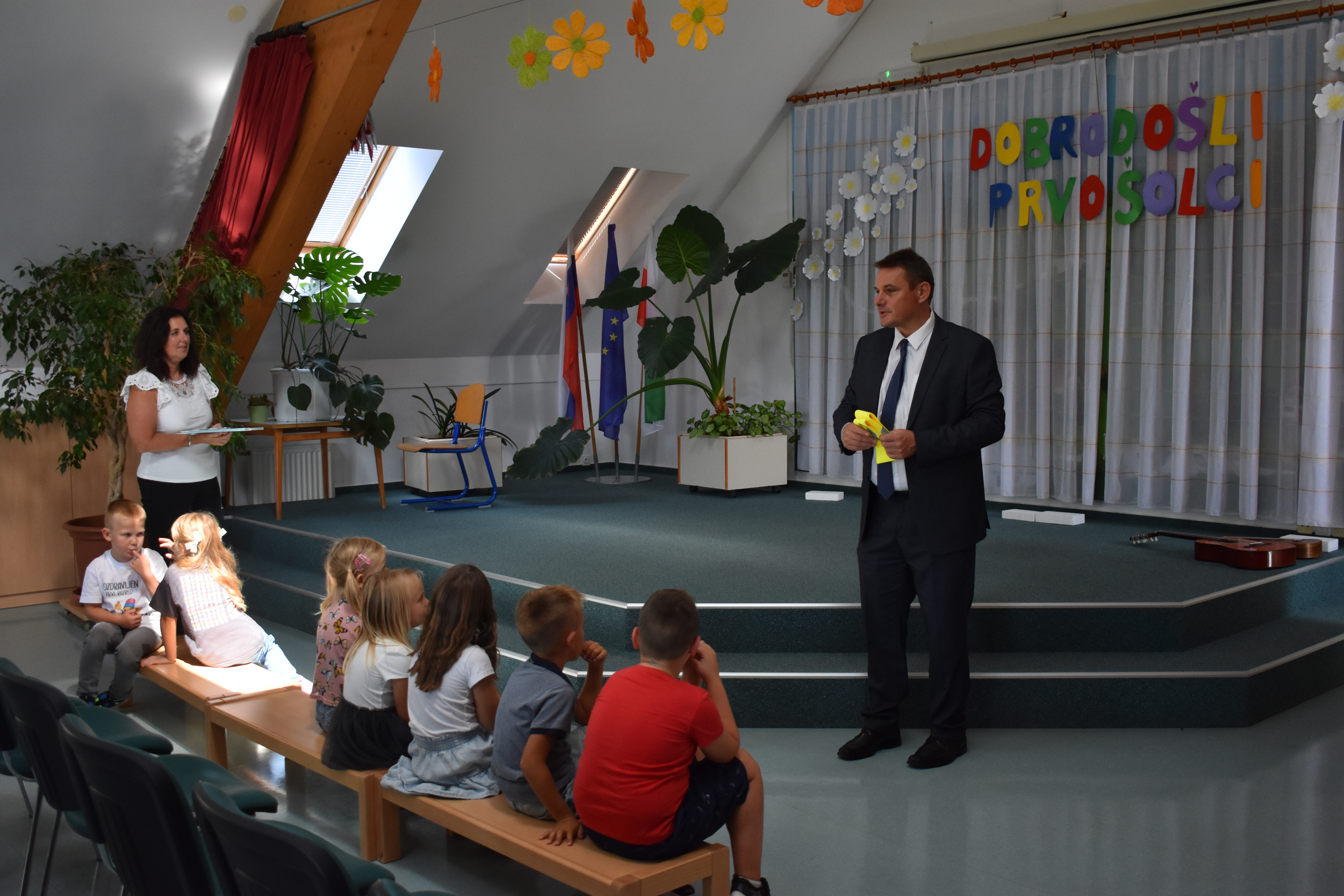 Po prvi šolski malici sta učence, starše in zaposlene obiskala še župan gospod Diaci ter ravnateljica šole. S svojimi spodbudnimi besedami sta prvošolcem vlila dodatno samozavest in jim zaželela uspešno in radovedno šolsko pot. Ob tej priložnosti so učenci prejeli tudi majhna darilca, za konec pa jih je razveselila še torta, ki je sladko zaokrožila njihov prvi šolski dan.