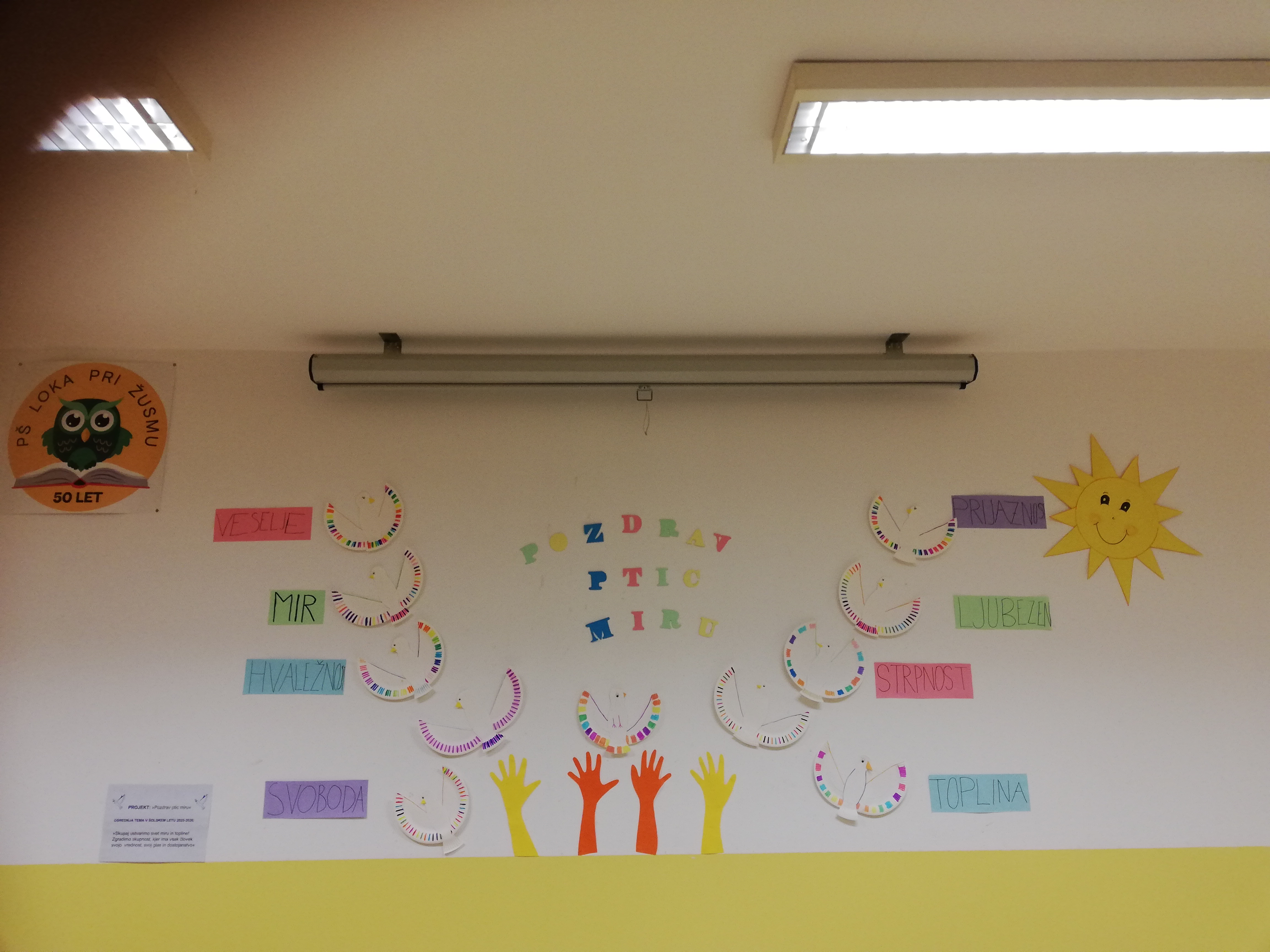 Z drugošolci matične šole in učenci POŠ Loka, smo tudi v letošnjem šolskem letu obeležili mednarodni dan miru. Z učenci smo razmišljali in se pogovarjali o pomenu miru, likovno in literarno ustvarjali ter tako simbolično v svet ponesli naše ‘ptice miru’.