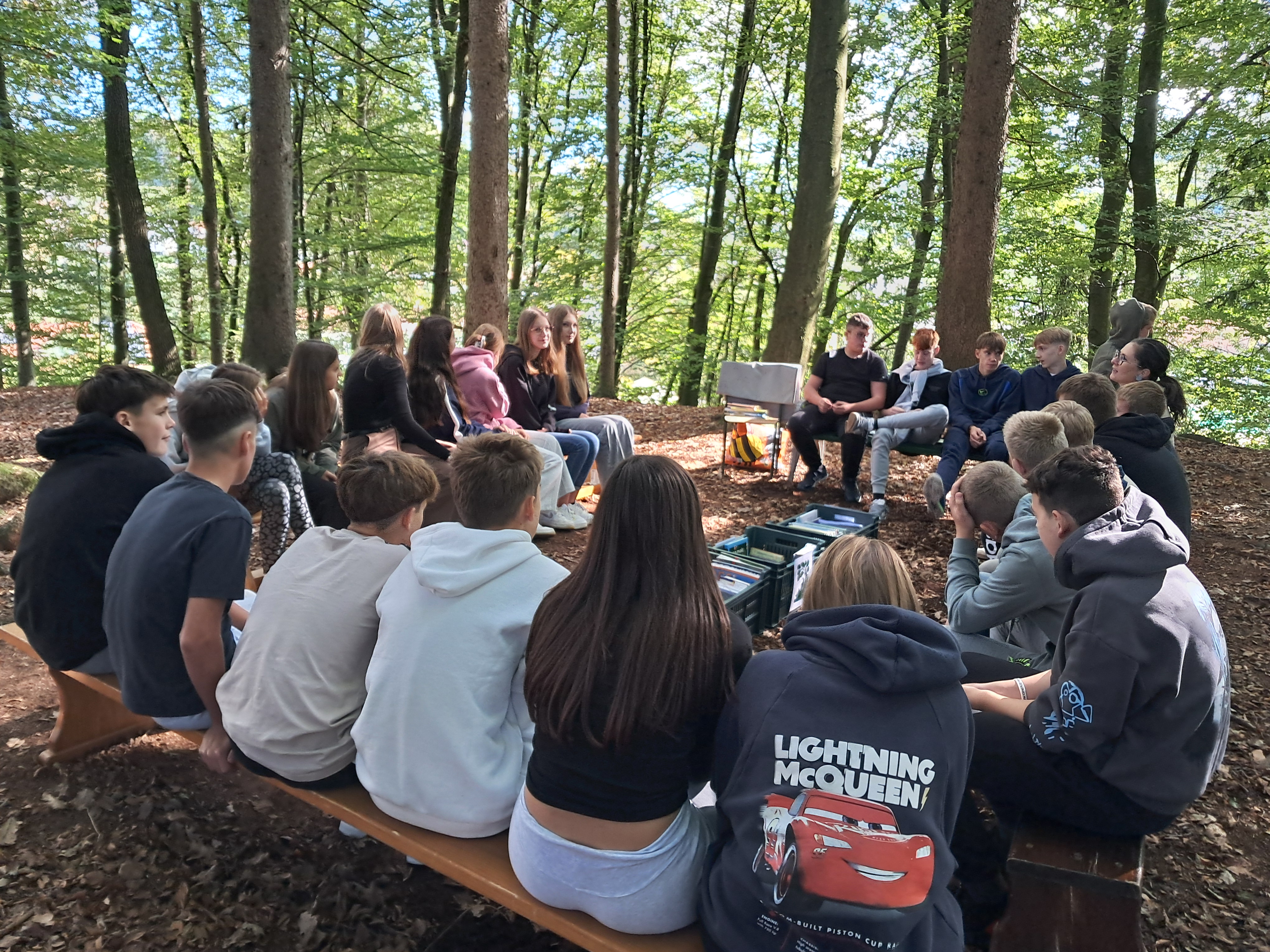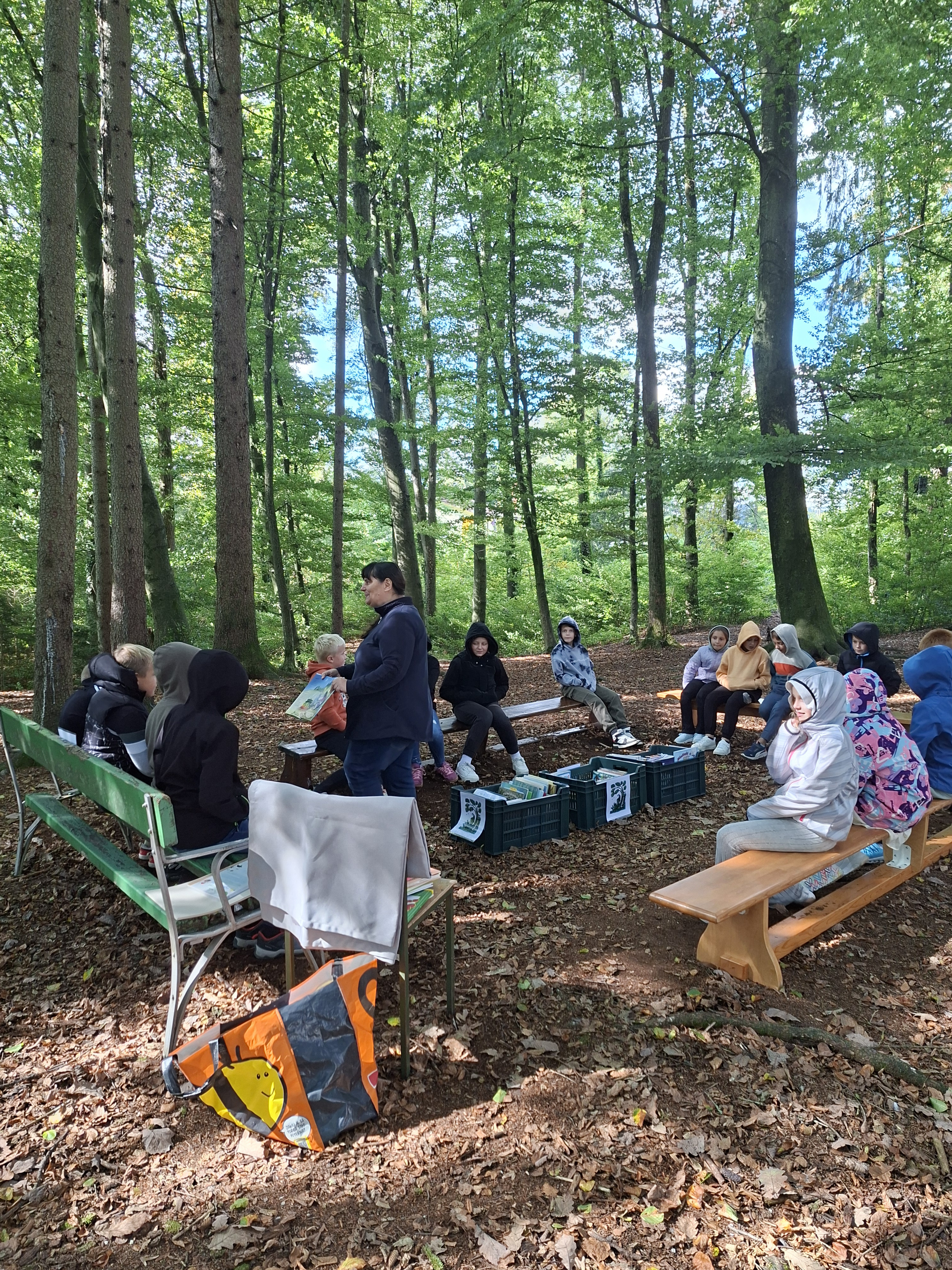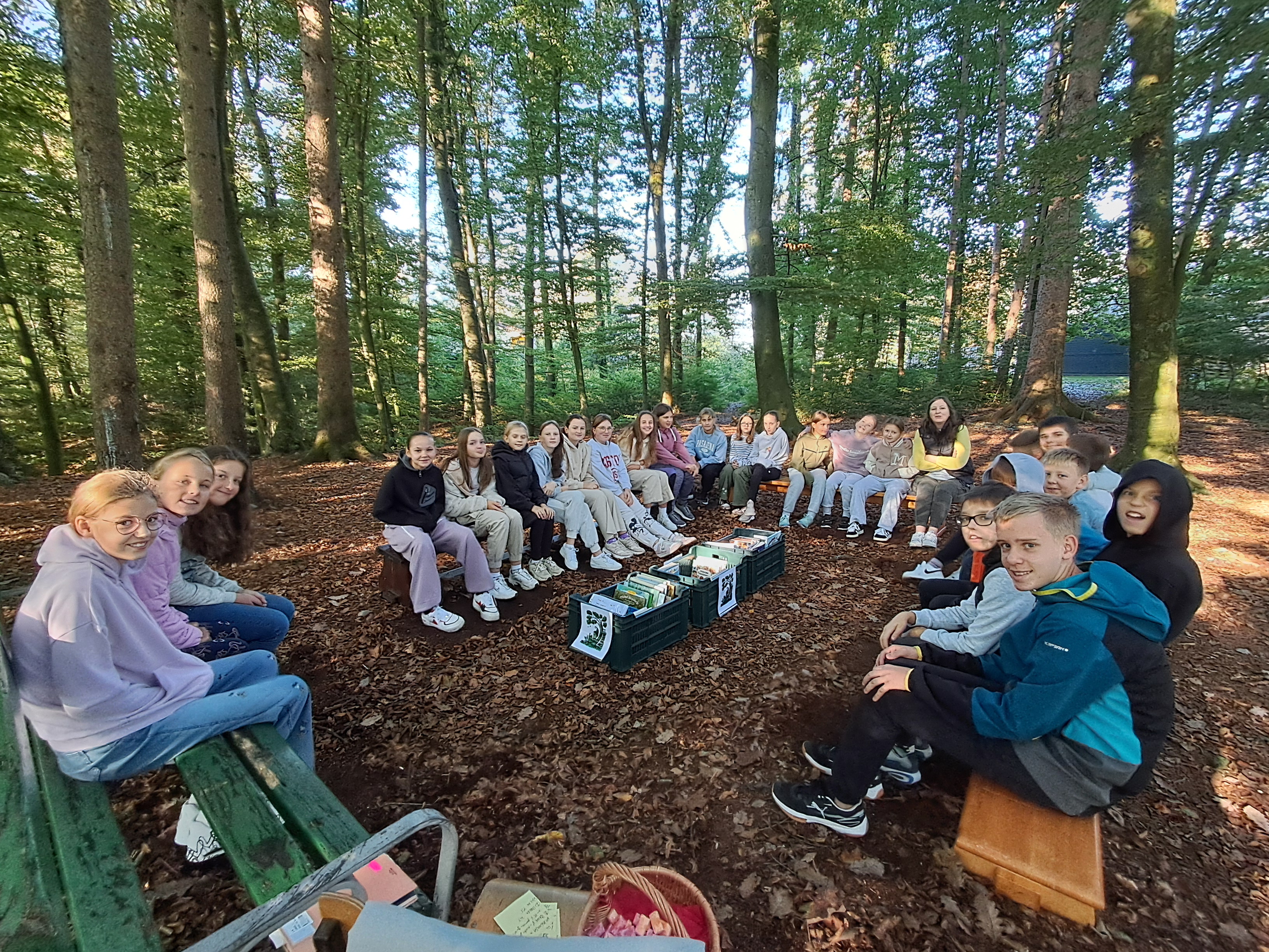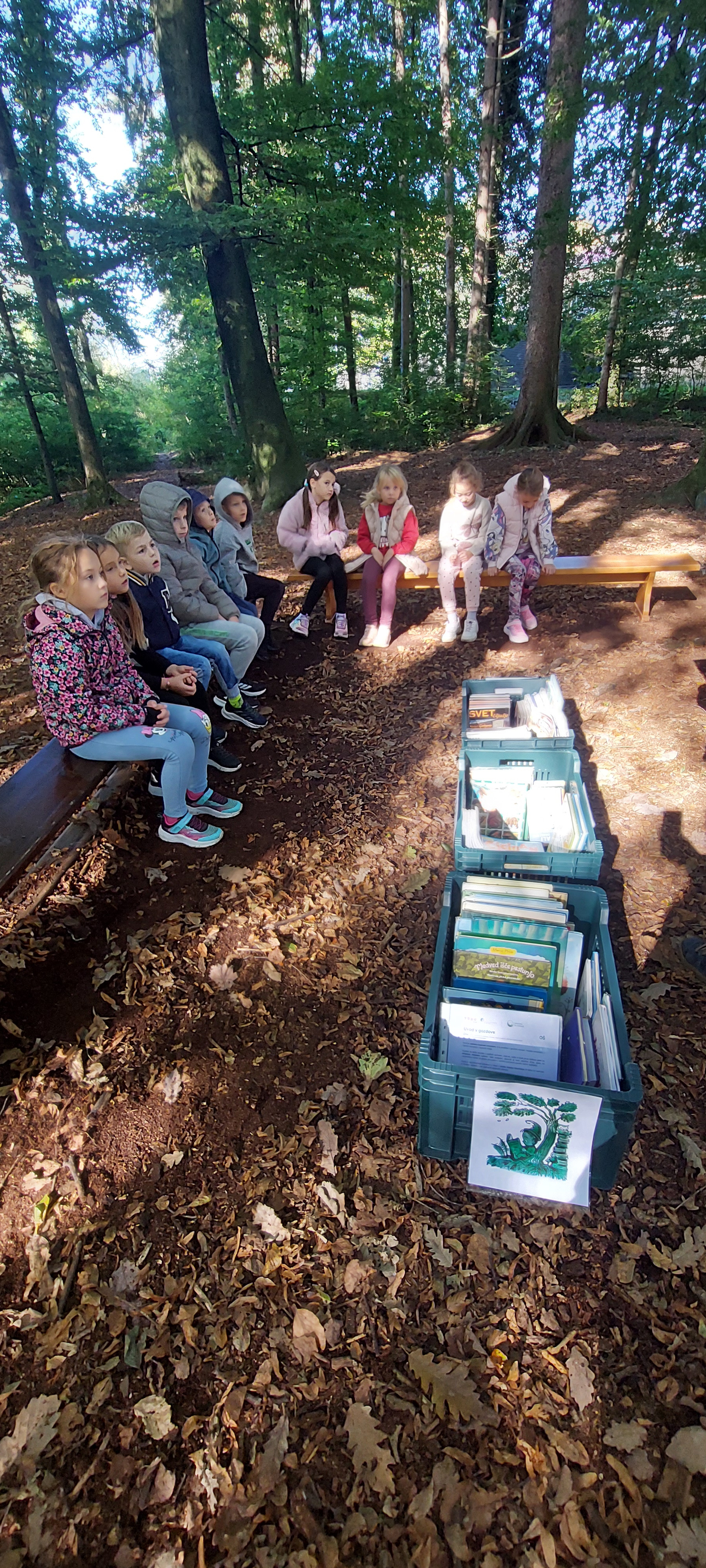 V bližnjem gozdu smo za en dan vzpostavili gozdno knjižnico. V sredo, 1. oktobra 2025, so jo v okviru pouka ali v času podaljšanega bivanja v spremstvu učiteljev obiskali vsi učenci od prvega do devetega razreda. Branje v gozdni knjižnici smo organizirali na pobudo Turistične zveze Slovenije, Gozdarske knjižnice in Andragoškega centra Slovenije.