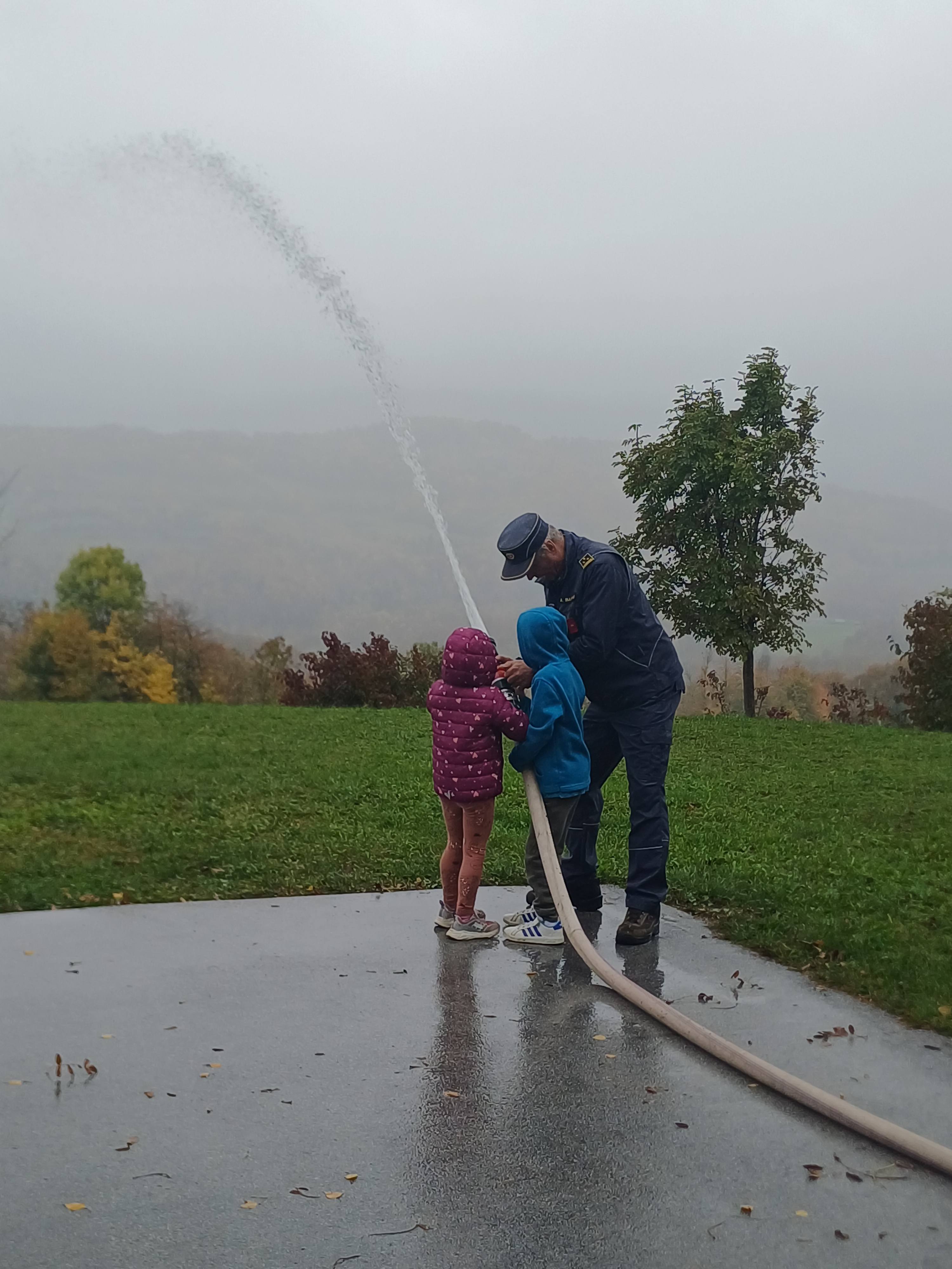 Za piko na i, so otroci lahko preizkusili tudi škropljenje z gasilsko cevjo, kar je poskrbelo za veliko navdušenja in smeha. Dogodek je bil poučen, zanimiv in predvsem priložnost, da se vsi skupaj spomnimo, kako pomembna je požarna varnost in pravilno ravnanje v primeru nevarnosti.