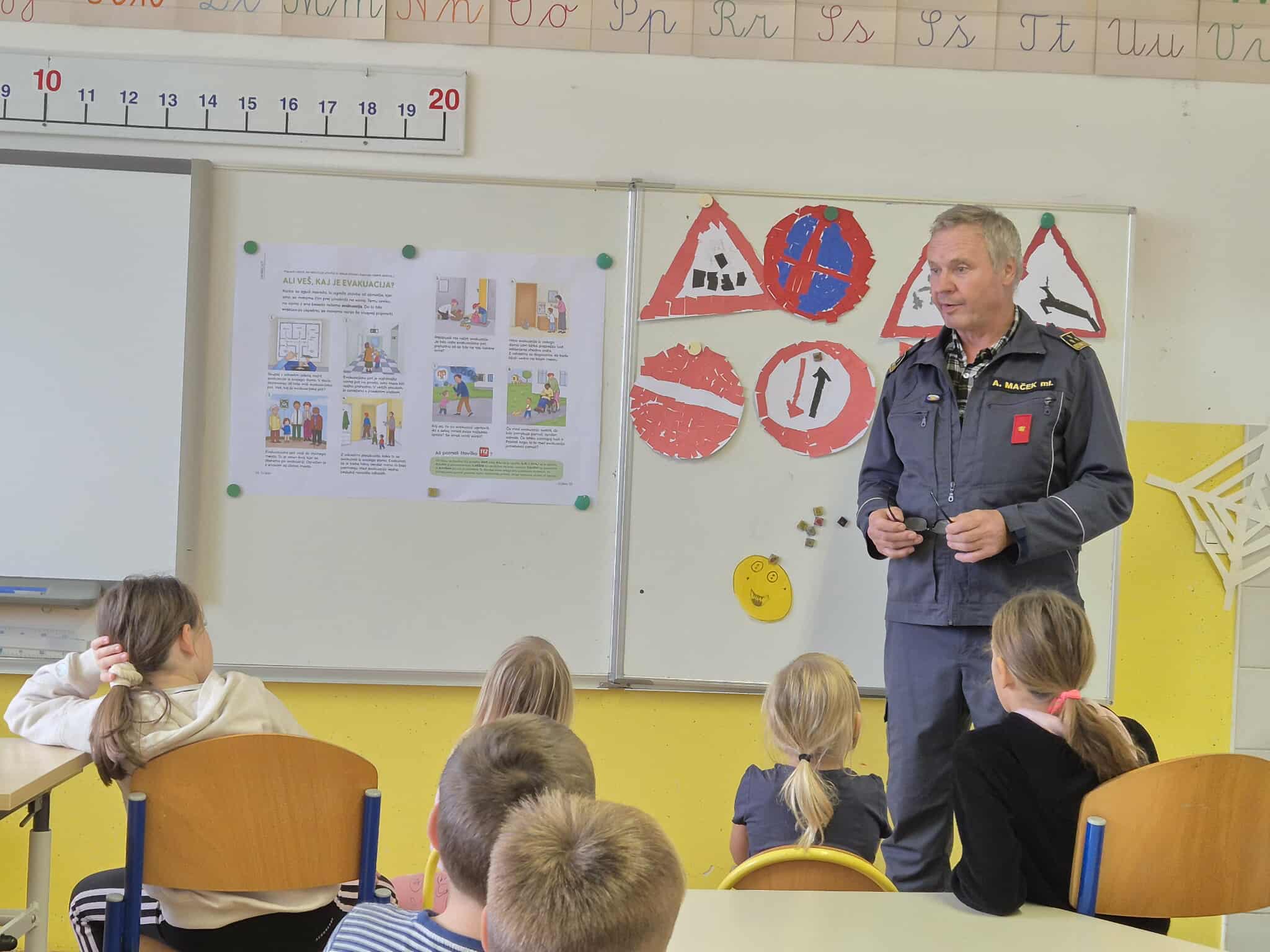 K sodelovanju sta prijazno pristopila gasilca g. Toni Maček in g. Radovan Pohajač, ki sta otrokom predstavila delo gasilcev in jih seznanila z ukrepanjem gasilcev pri požaru, potresu in poplavi, ter poudarila pomen mirnosti in sodelovanja med evakuacijo. Po uspešno izvedeni evakuaciji sta gasilca pokazala tudi gasilni avtomobil, opremo, ki jo uporabljajo pri intervencijah, in odgovorila na številna radovedna vprašanja otrok.