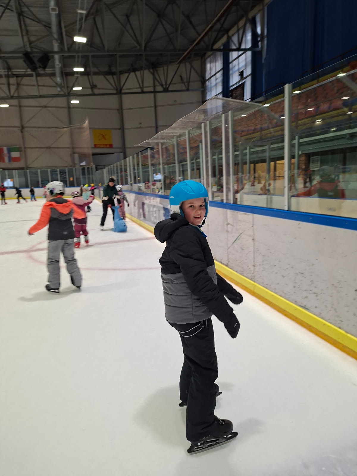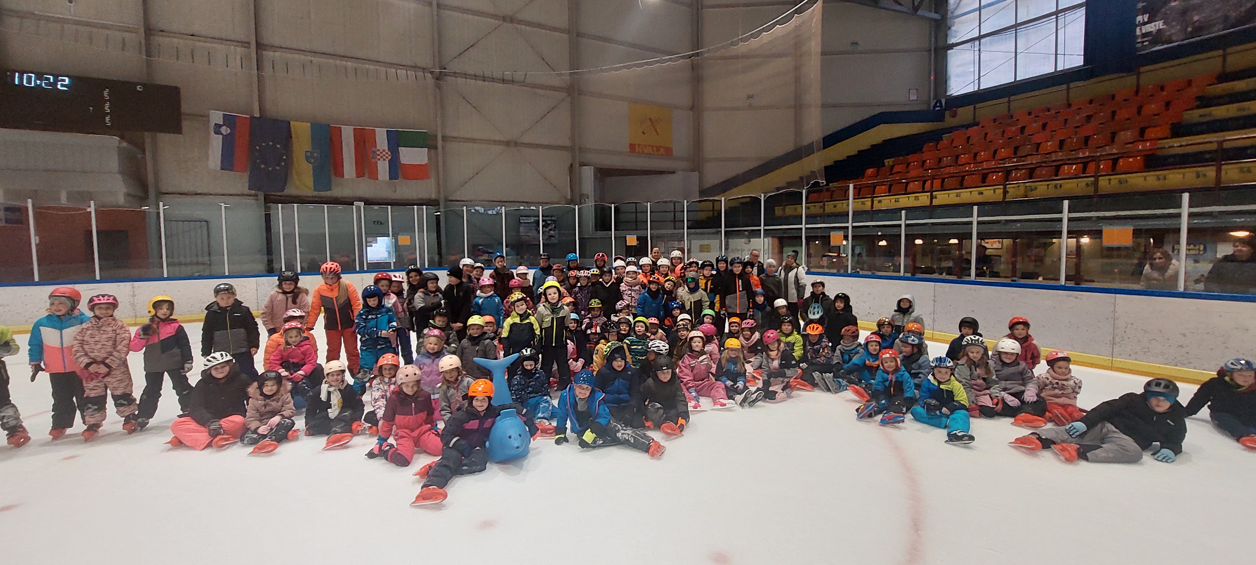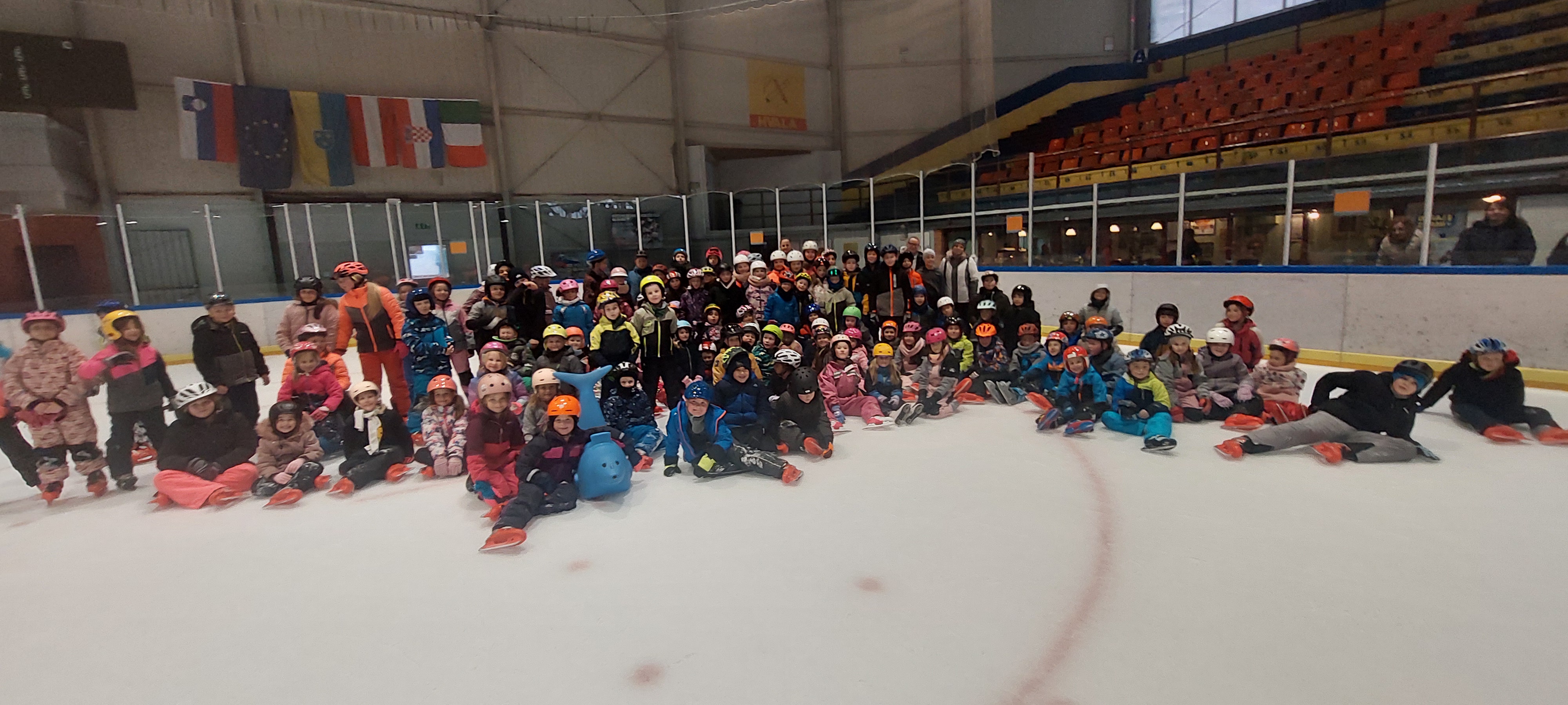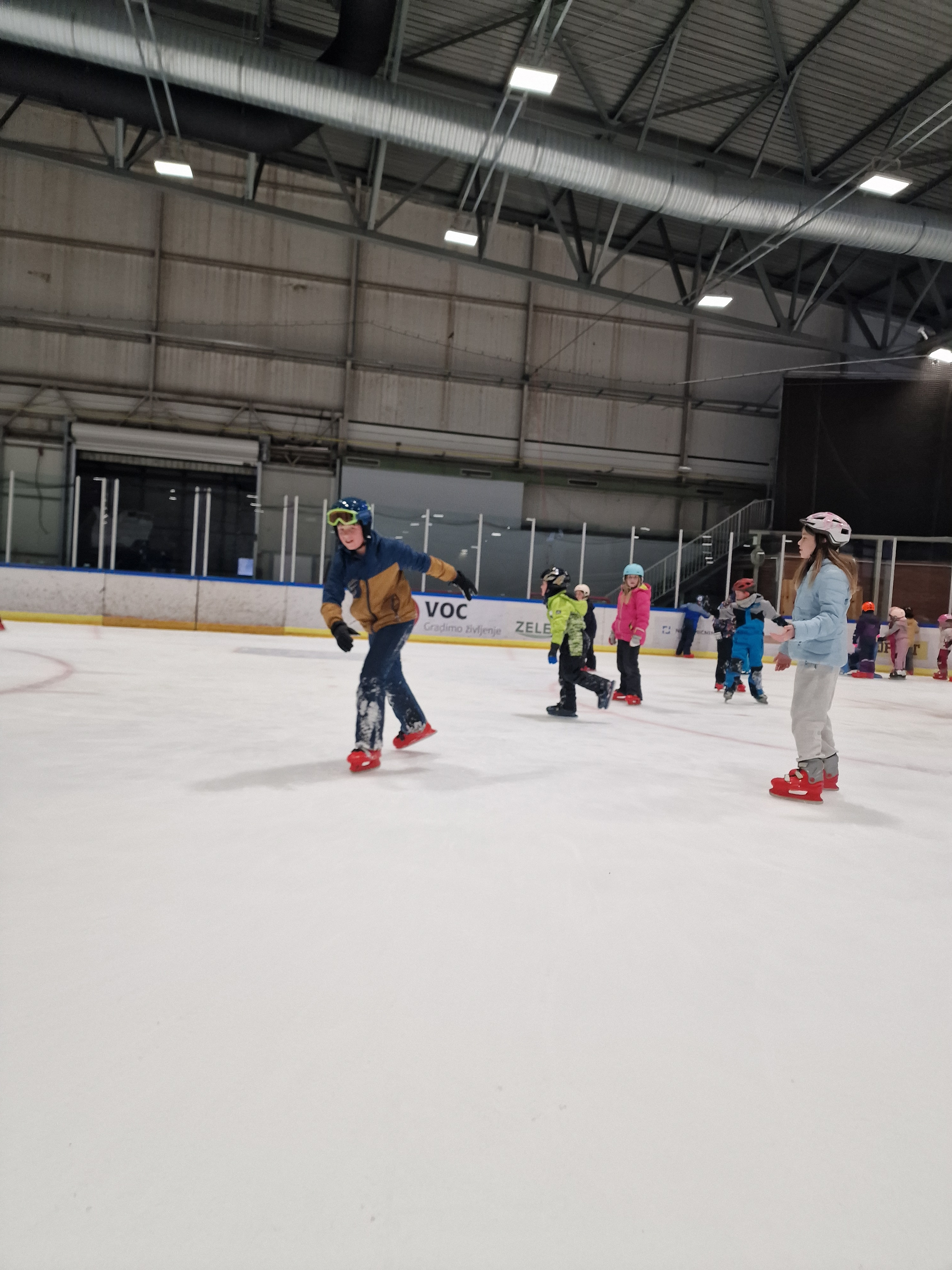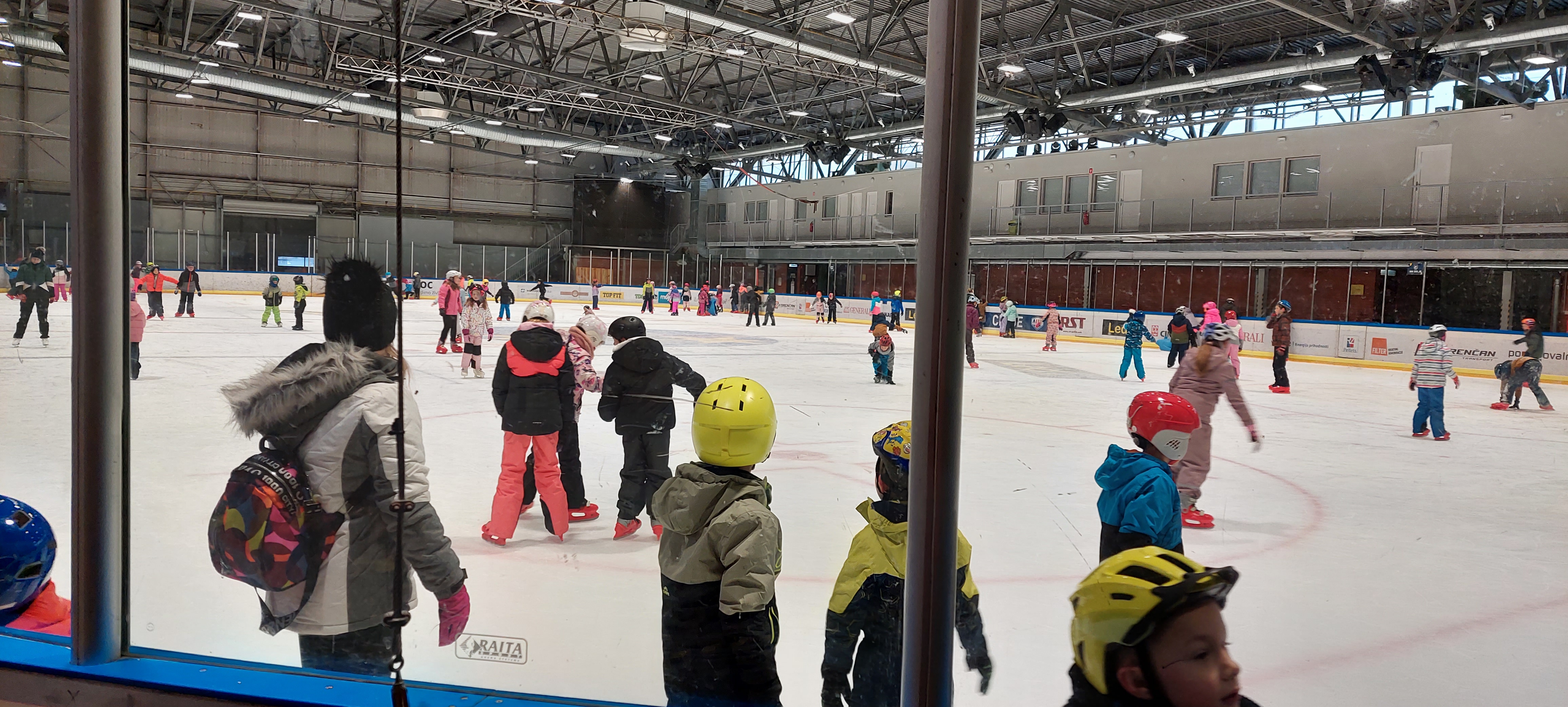 Z avtobusi smo se odpeljali v Celje, do ledene dvorane, se uredili za na ledeno površino (oblekli zimska oblačila in obuli drsalke, si nataknili čelade) in začeli z drsanjem.