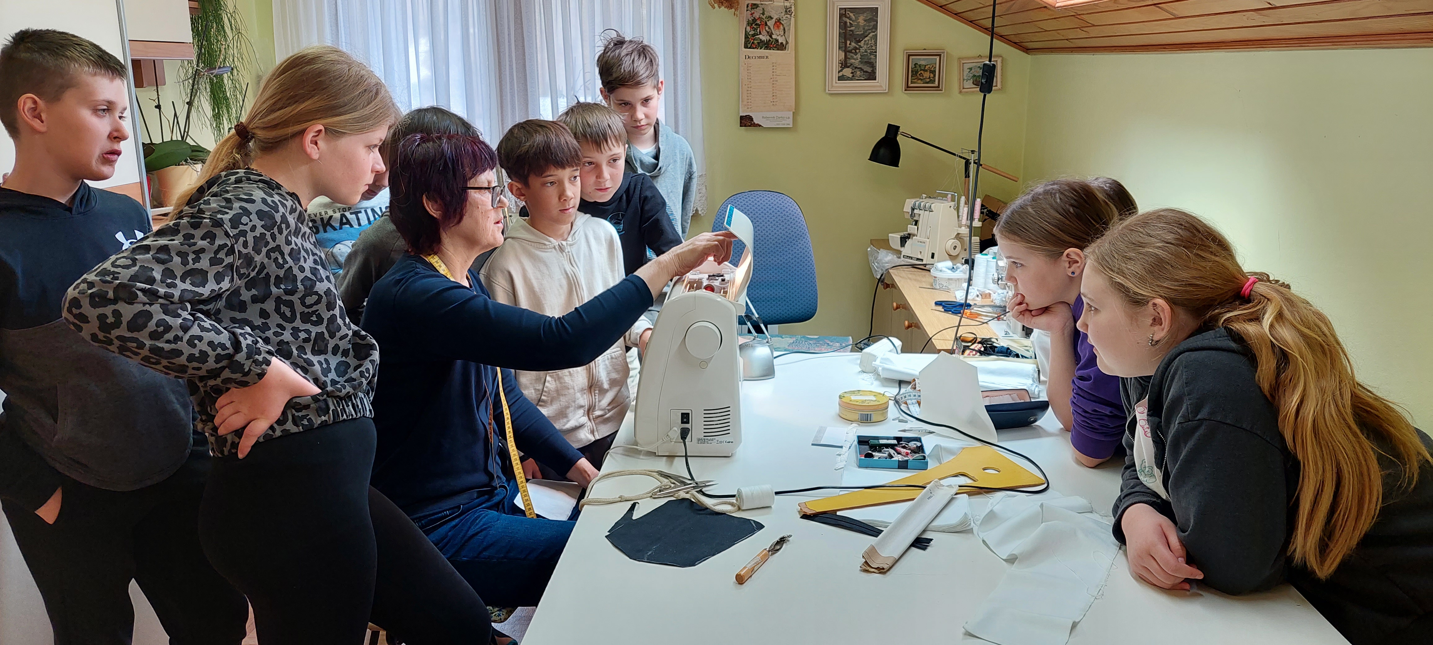 V ponedeljek, 30. 3. 2026, smo se odpravili k šivilji Vidi. Ko smo vstopili v njen dom, nas je povabila v sobo, kjer šiva.