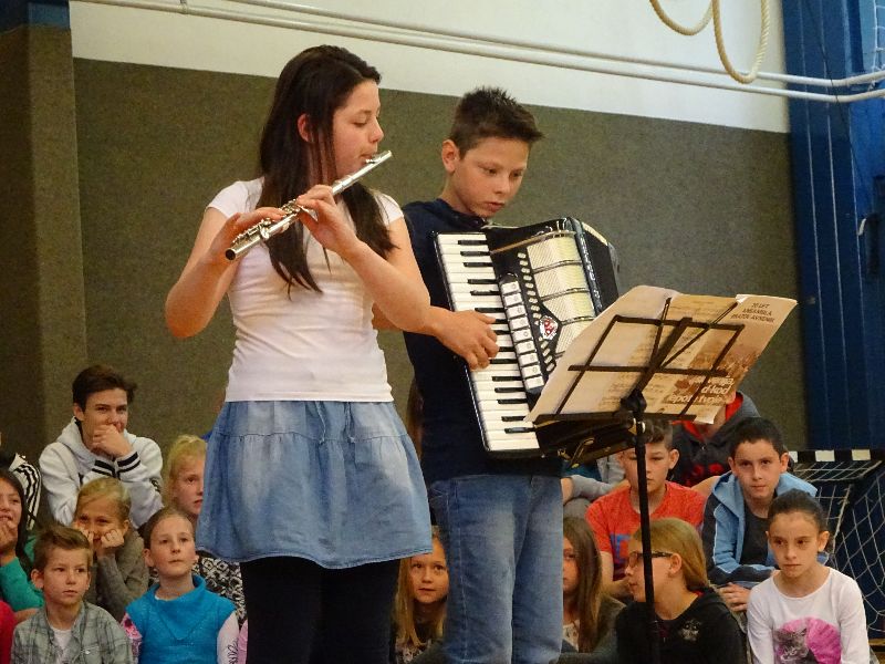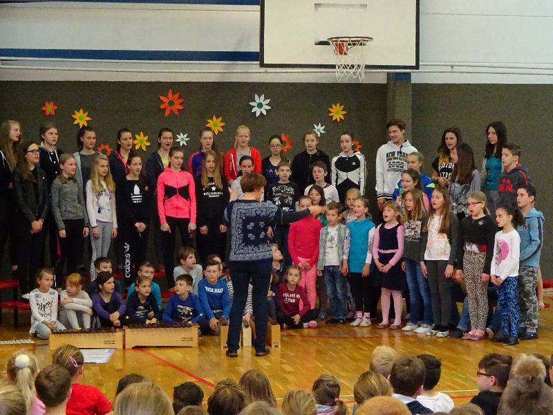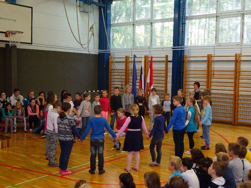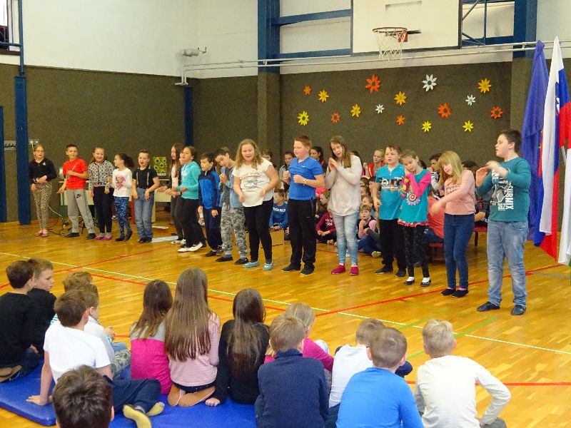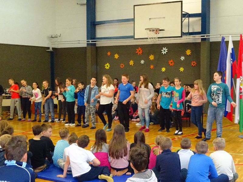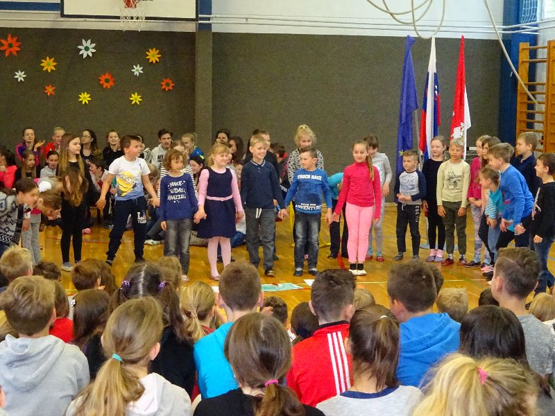 V sredo, 26. 4. 2017, smo v Gorici s kulturnim programom obeležili prihajajoča praznika – dan upora proti okupatorju in praznik dela. Maj nas je ob prebiranju verzov Kajuhovih pesmi spomnil na čas, ko je pri nas divjala vojna, na čas terorja, smrti in trpljenja. Na čas, ko so se kmetje puntali, delavci stavkali. Sedaj živimo v miru. Svobodno lahko ustvarjamo, pojemo, plešemo, se igramo, raziskujemo naravo, družbo in se veselimo vsakega dne.  Našo razigranost smo s petjem, plesom in igranjem pokazali tudi na proslavi.