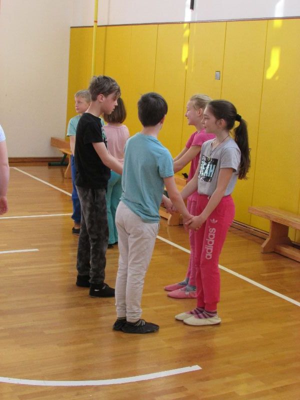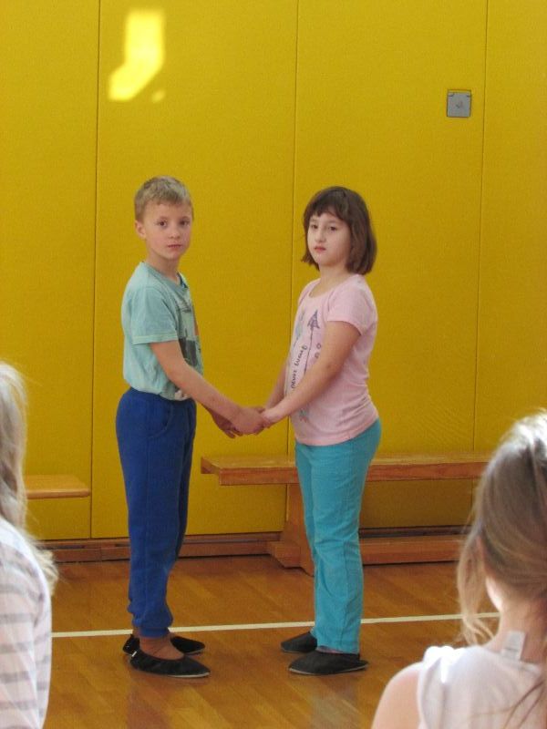 Na Prevorju smo ga pričeli razigrano, veselo in malo drugače, saj sta nas obiskala Anja Lavbič in Žan Vodeb iz KUD Skrinja Šentjur. Izvedla sta delavnico Izgubljeni plesni korak. Otroci so se z njima igrali in plesali ljudske plese. Ob zaključku delavnice so otroci po skupinah predstavili novo pridobljeno znanje.