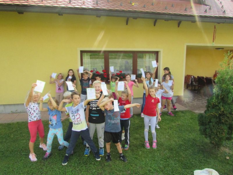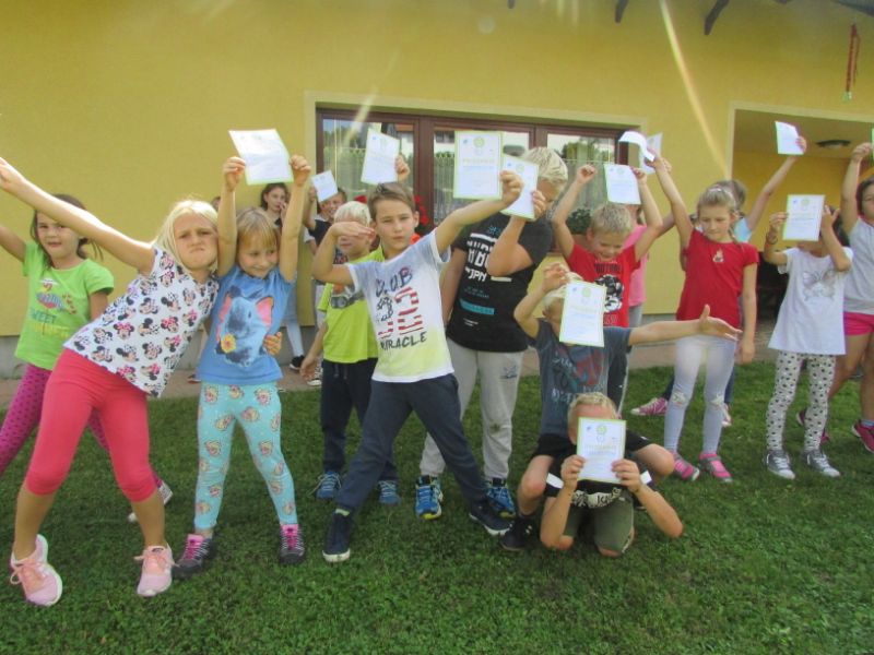 Letos nam je vreme služilo, zato smo tekli kar zunaj, na travniku. Za vsak odsek so otroci prejeli štampiljko. Zelo so se potrudili, vsak po svojih najboljših močeh. Na koncu so bili zadovoljni sami s sabo.