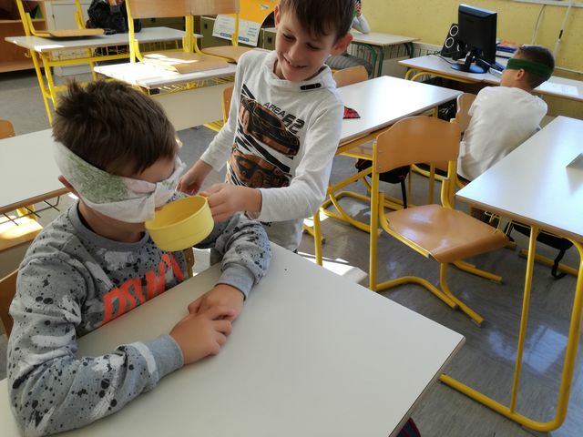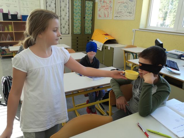 Četrtošolci so na naravoslovnem dnevu na petih postajah sprejemali dražljaje iz okolice z različnimi čutili. Tako so z zaprtimi očmi prepoznavali različne vonjave, okušali hrano in pijačo, risali in tipali. Poslušali so različne zvoke, poskušali ugotoviti, kaj jim sošolci pišejo/rišejo po hrbtu in še marsikaj.