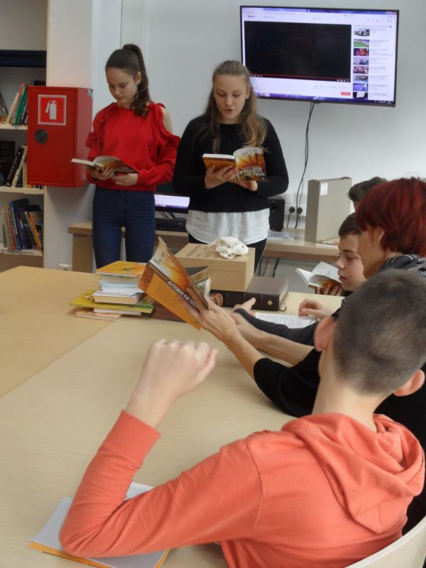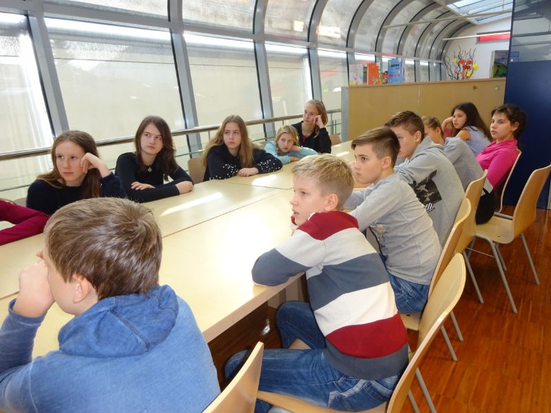 V četrtek, 8. 11. 2018, smo sedmošolci v okviru nacionalnega projekta Rastem s knjigo obiskali Knjižnico Šentjur. Poučili smo se o vrstah knjižnice, njihovi urejenosti, vrstah in obsegu knjižničnega gradiva, o rokovanju s starimi poškodovanimi knjigami, ogledali smo si tudi dragocene primerke knjig in spoznavali iskanje po računalniškem katalogu … Predstavili so nam knjigo avtorice Nataše Konc Lorenzutti Avtobus ob treh, ki smo jo vsi učenci prejeli v dar. Obisk Šentjurja smo izkoristili tudi za ogled prenovljene razstave v Ipavčevi hiši in ogled arheološke razstave Rifnik in njegovi zakladi.