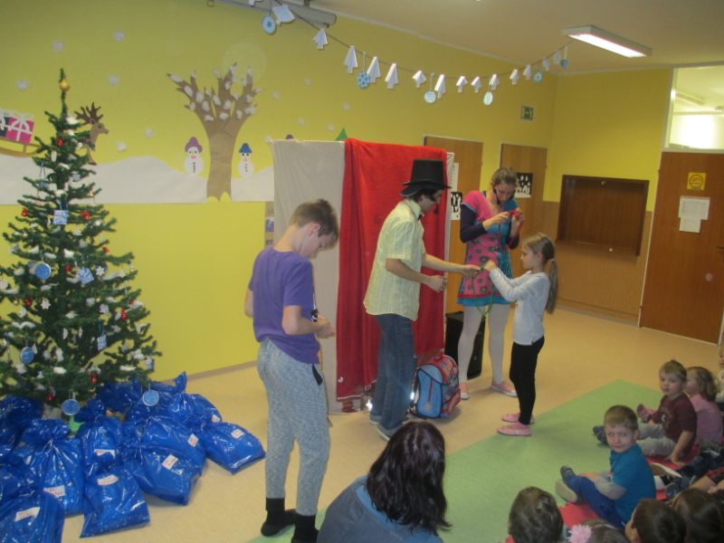 Siva kučma, bela brada, topel kožuh, zvrhan koš. Joj, že prišel je med nas stari, dobri dedek Mraz. In res je prišel. V sredo, 19. 12. 2018, je bil na obisku tudi pri nas v Loki. Otroci so si najprej ogledali predstavo, pri kateri so zelo uživali in zraven tudi sodelovali. Skupaj smo poklicali dedka Mraza, ki je prišel pozdravit otroke in jim razdelil darila. Obisk dedka Mraza se je končal s pesmico in veliko dobre volje.