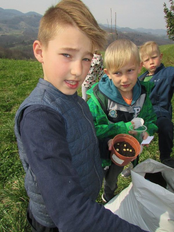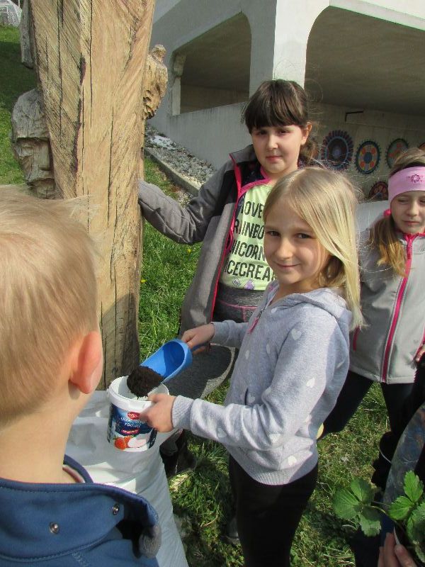 Pri spoznavanju okolja smo z učenci prve triade posejali in posadili semena vrtnin, ki so jih prinesli od doma. Posejali smo peteršilj, kumarice, papriko, posadili pa čebulo, buče, grah, fižol in krompir in sadiko jagode. Učenci so z zanimanjem sodelovali, pomagali in se učili.
