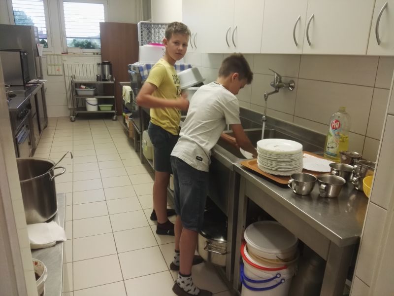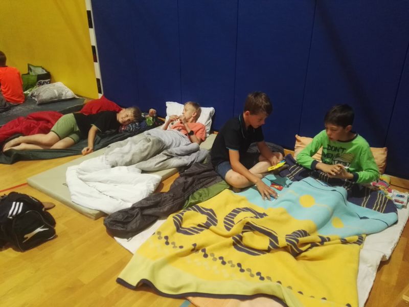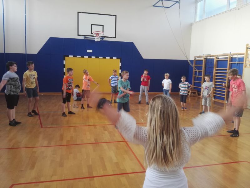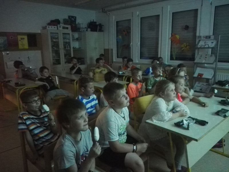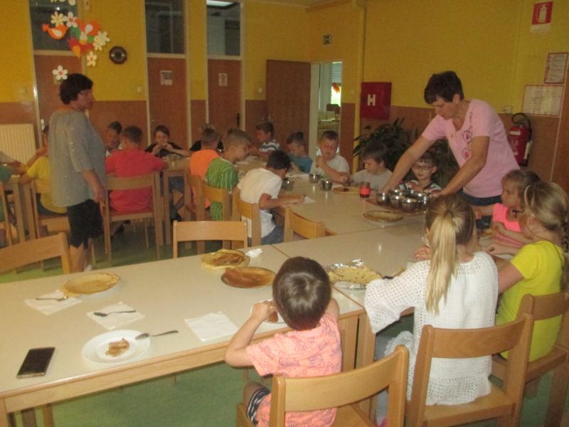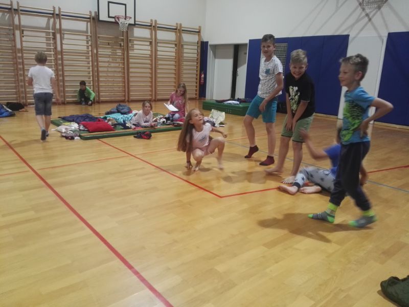 Po okusni večerji smo zunaj na igrišču igrali badminton in med dvema ognjema. Ko smo bili vsi izmučeni, smo odšli na ogled pravljičnega kina. Pri prvi pravljici smo lizali sladoled, pri drugi pa vzeli svoje dobrote in si jih razdelili. Pozno zvečer smo razpakirali svoje stvari in zaigrali še štiri pravljice. Nato sem jaz prebrala pravljico, ampak učiteljičina je bila tako zanimiva, da smo nekateri kar zaspali, drugi pa so še kar bedeli.